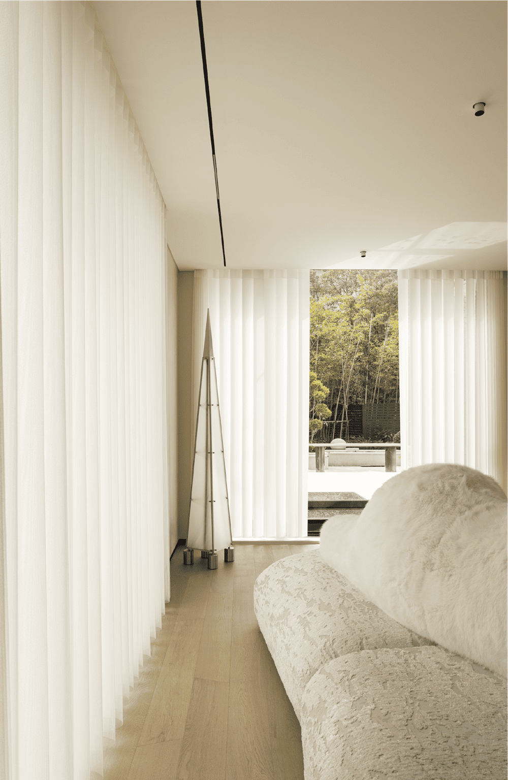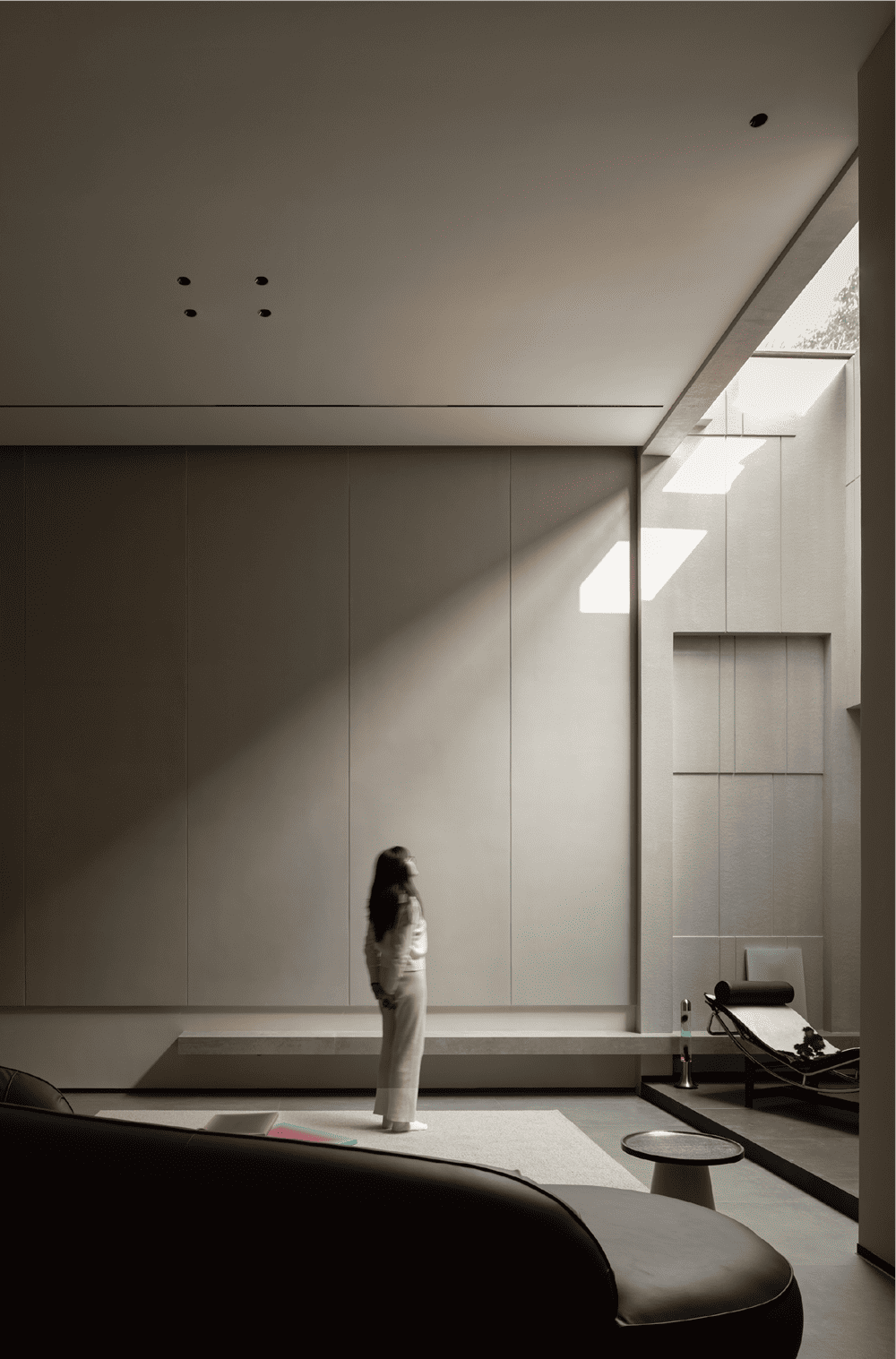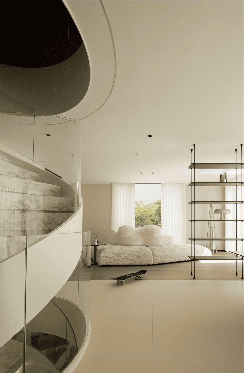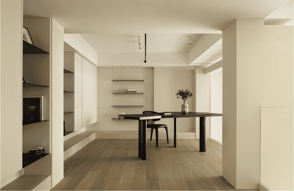In this private residence, the design team used the relative simplicity of nature as the spatial tone to create a pure and ultimate residence for the soul. The polar bear sofa is placed in the living room, so that each occupant can find a comfortable place in this space.