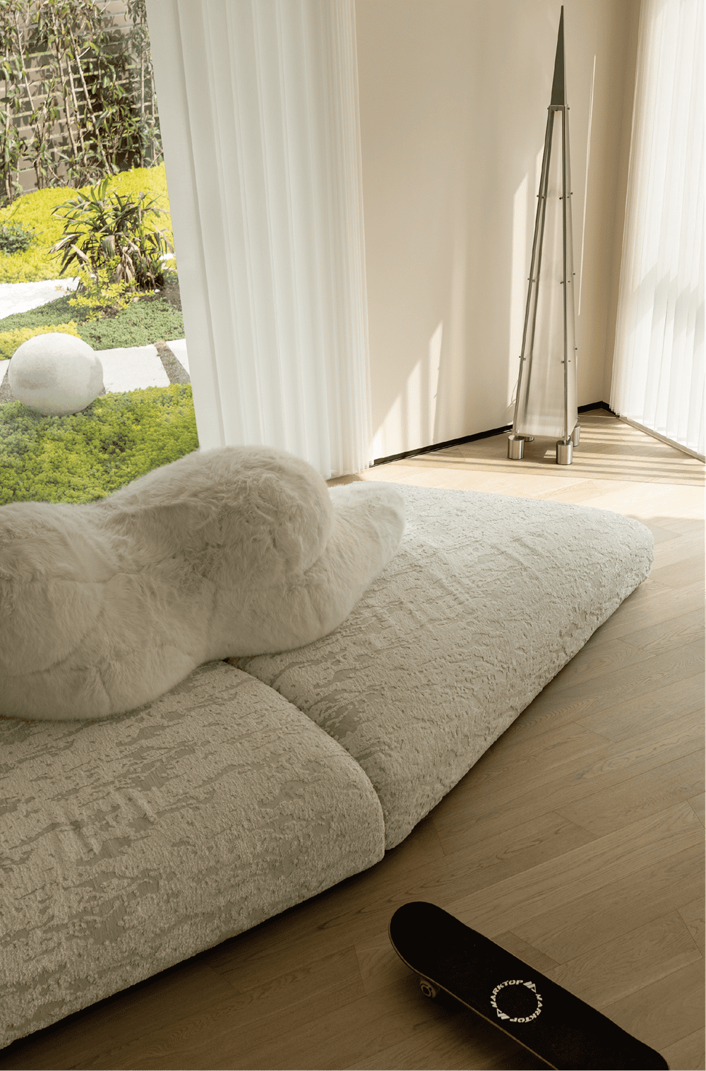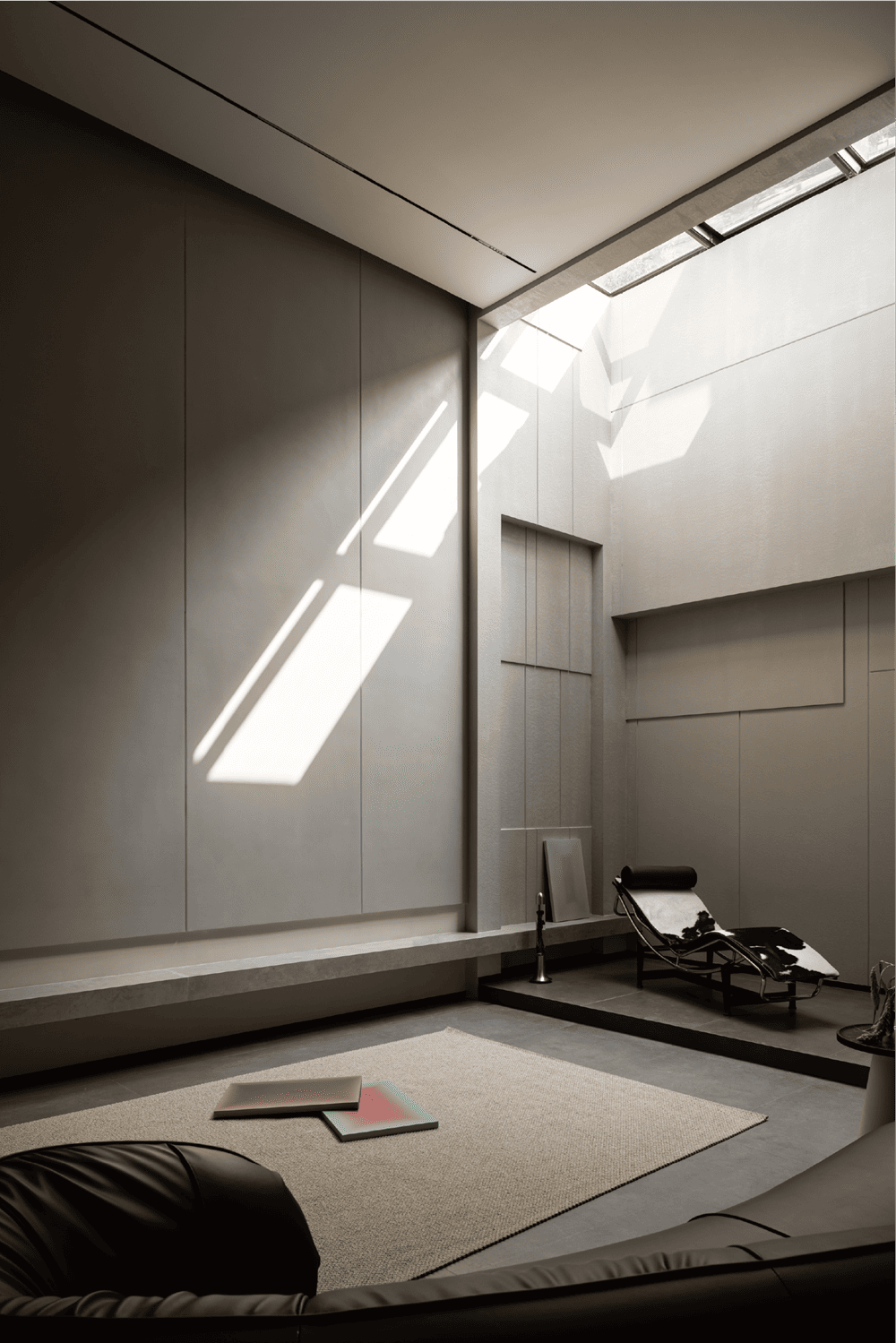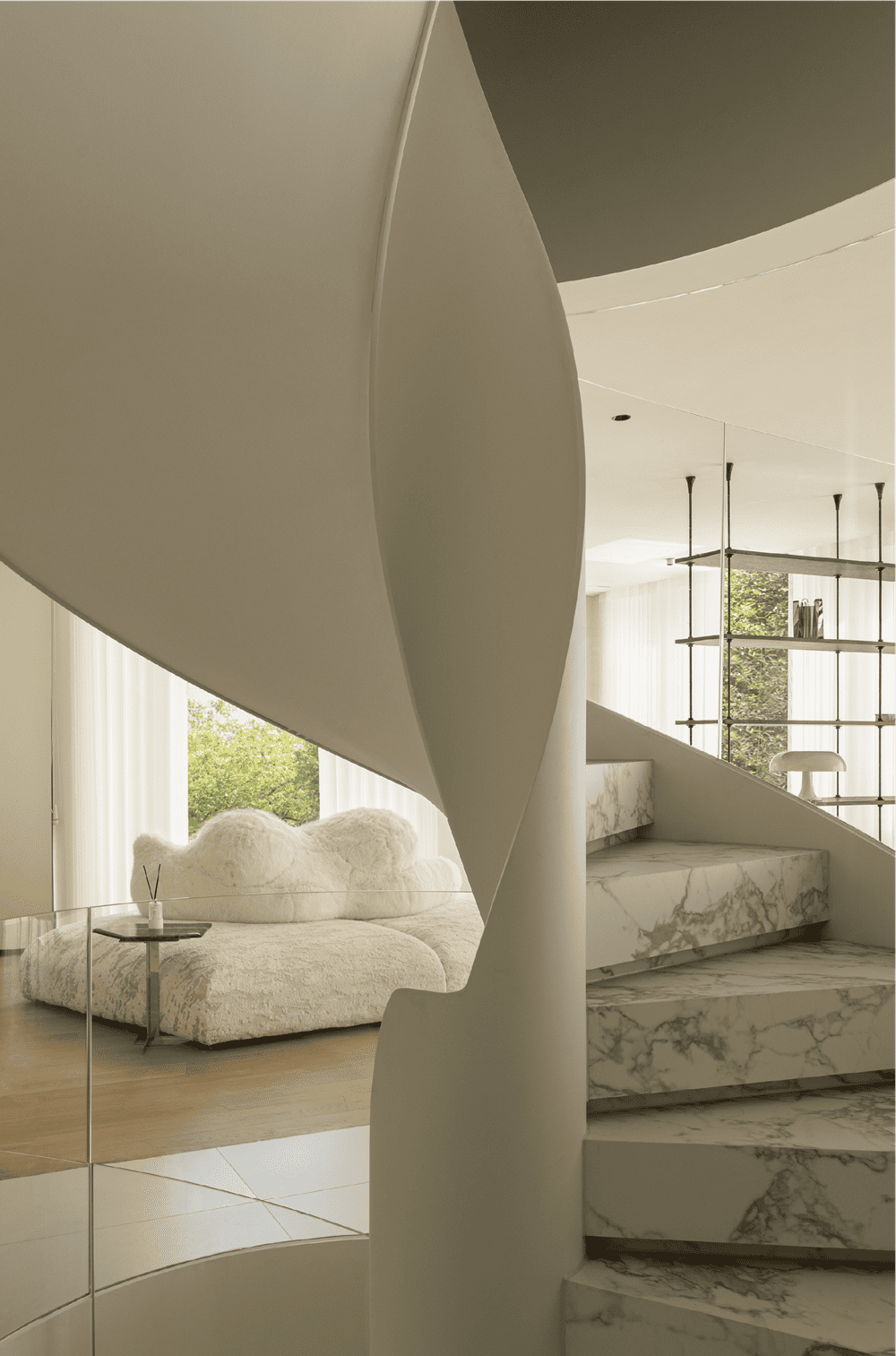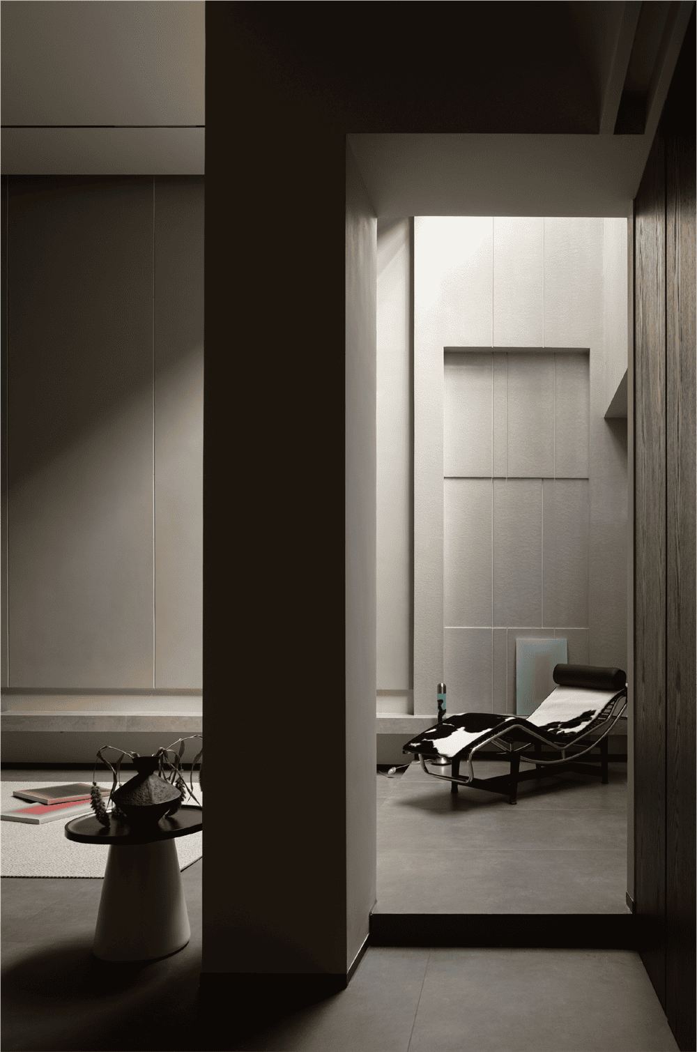 In this private residence, the design team used the relative simplicity of nature as the spatial tone to create a pure and ultimate residence for the soul. The polar bear sofa is placed in the living room, so that each occupant can find a comfortable place in this space.