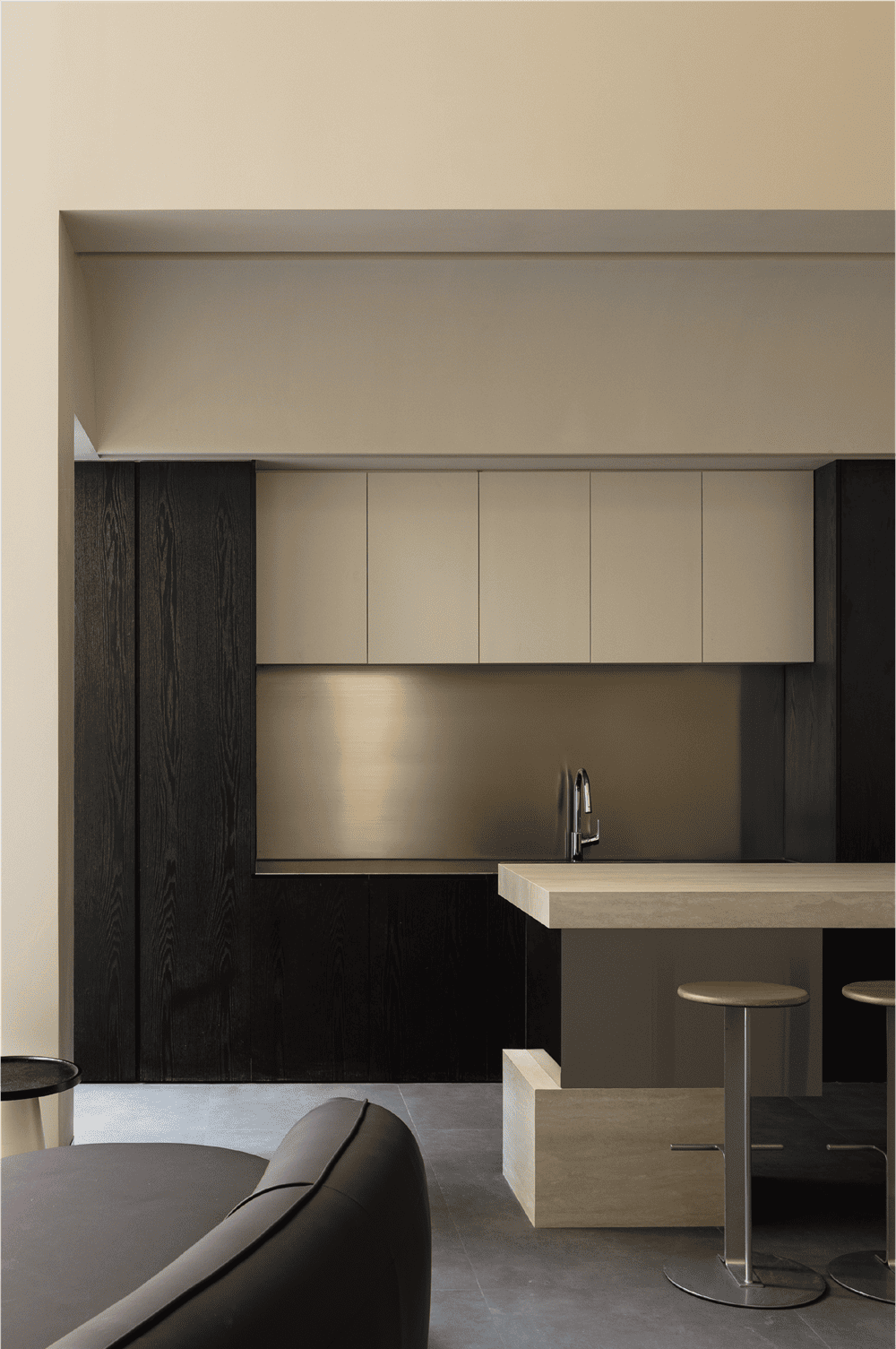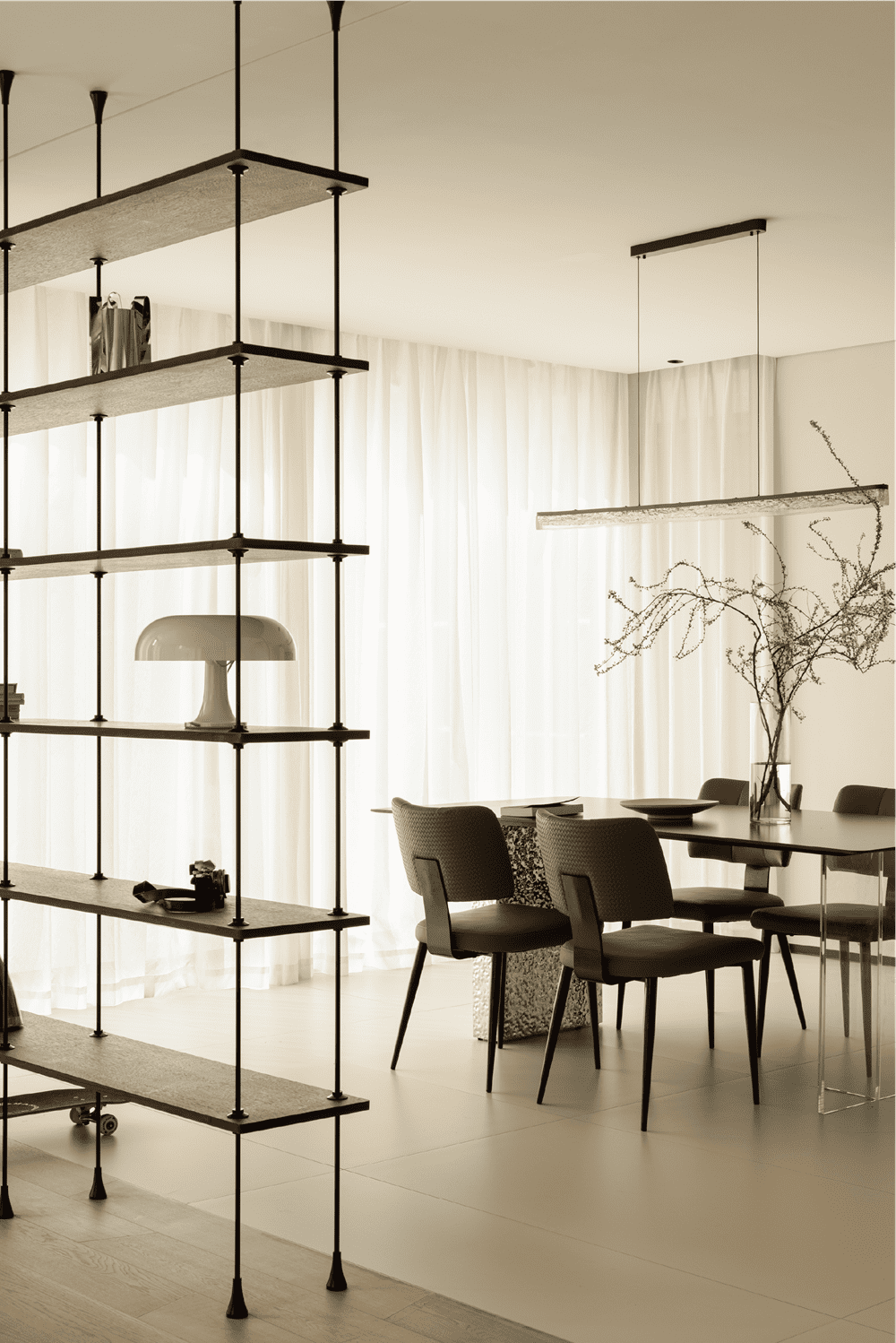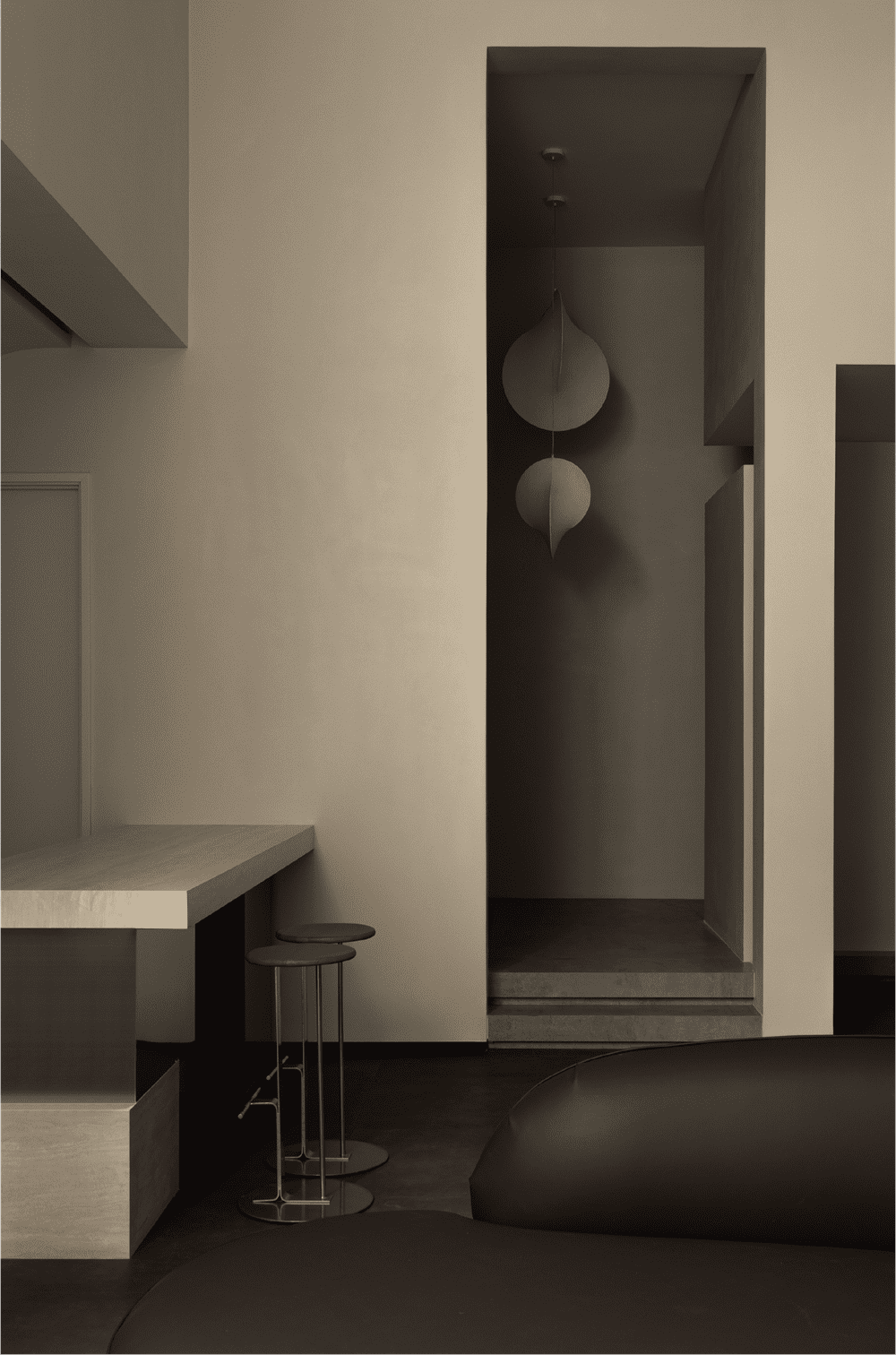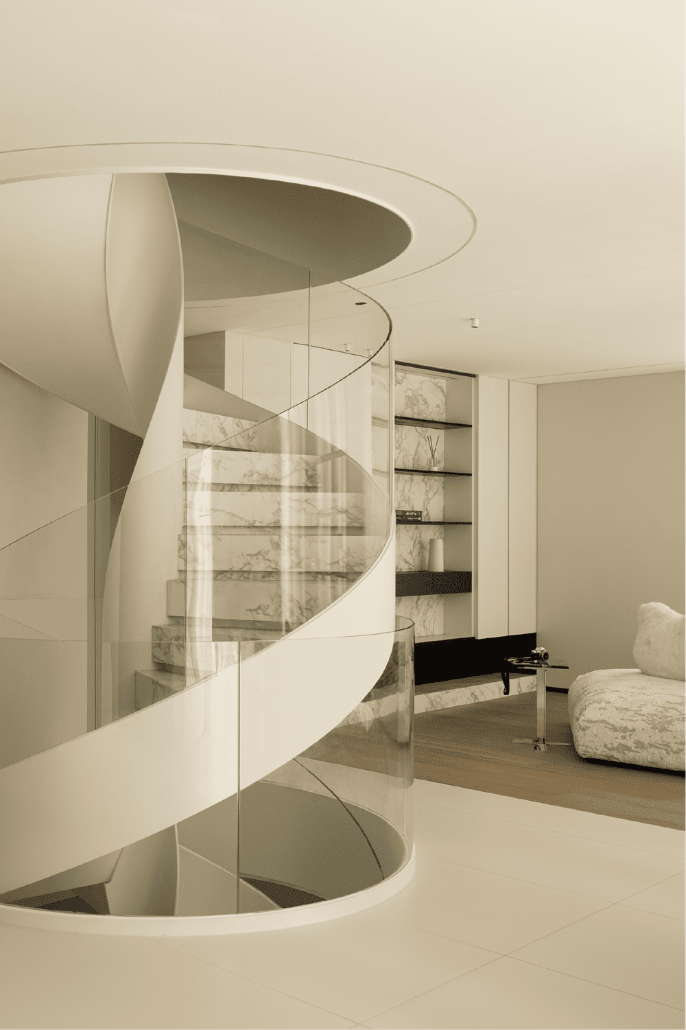 In this private residence, the design team used the relative simplicity of nature as the spatial tone to create a pure and ultimate residence for the soul. The polar bear sofa is placed in the living room, so that each occupant can find a comfortable place in this space.