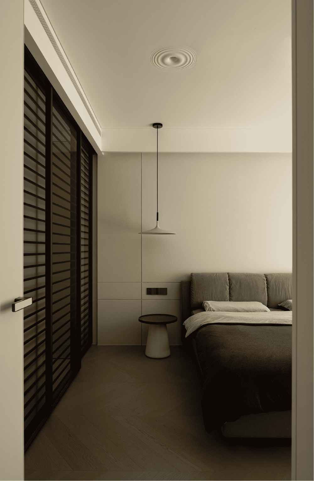 Minimalism gives rise to a thousand and one atmospheres. The master bedroom continues the quality of elegant simplicity, warmth and comfort, while the ample warm light and delicate and calm soft weaving all present a relaxed, quiet and calm atmosphere, allowing people to resonate with the environment and find inner ease. The texture of life never comes from artifice, but from enjoying a more casual and spontaneous life. The interesting ceiling design coincides with the child's whimsical thinking, and the planetary lamp on the left side is a small object that the children insist on wanting.
