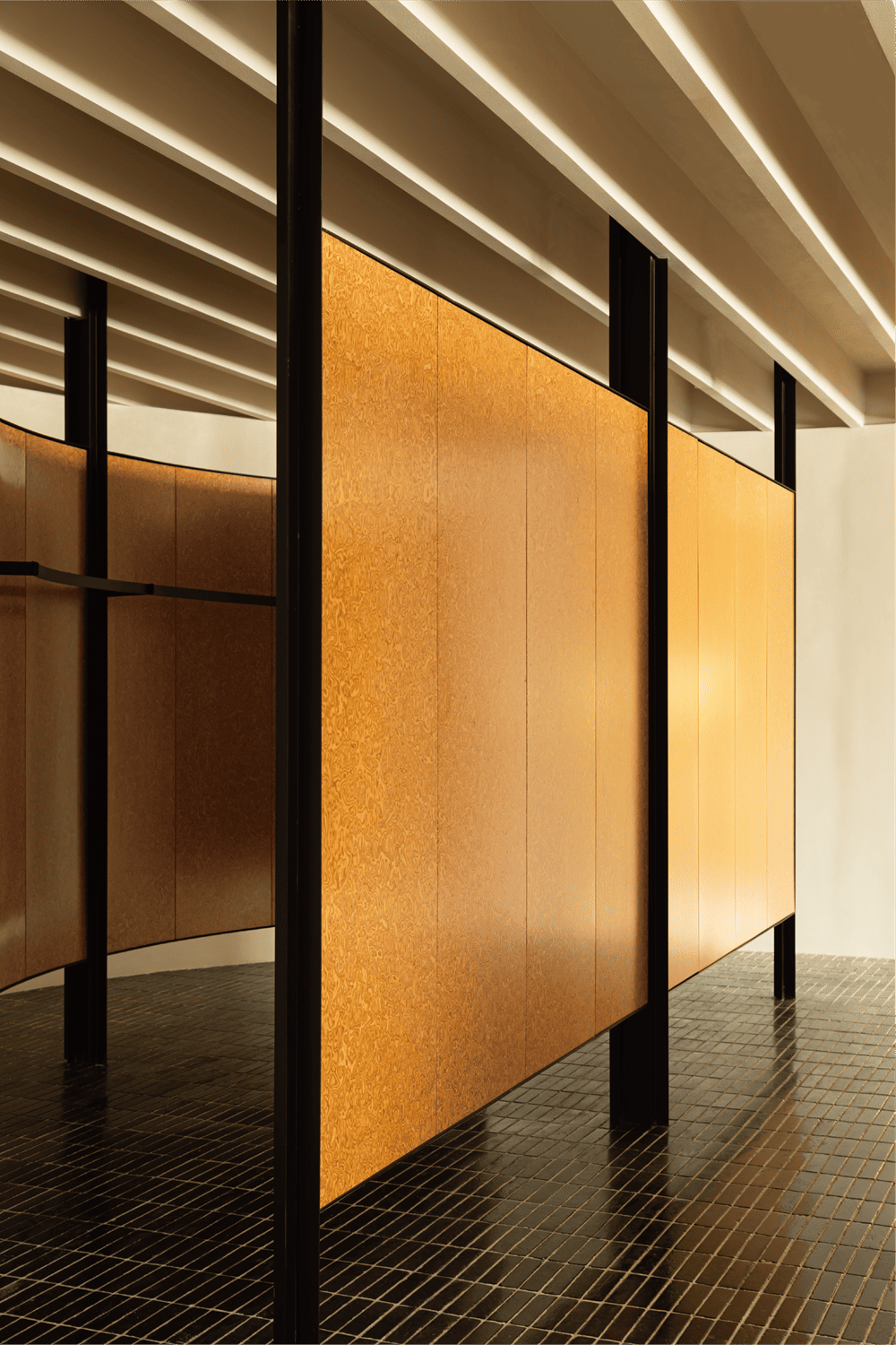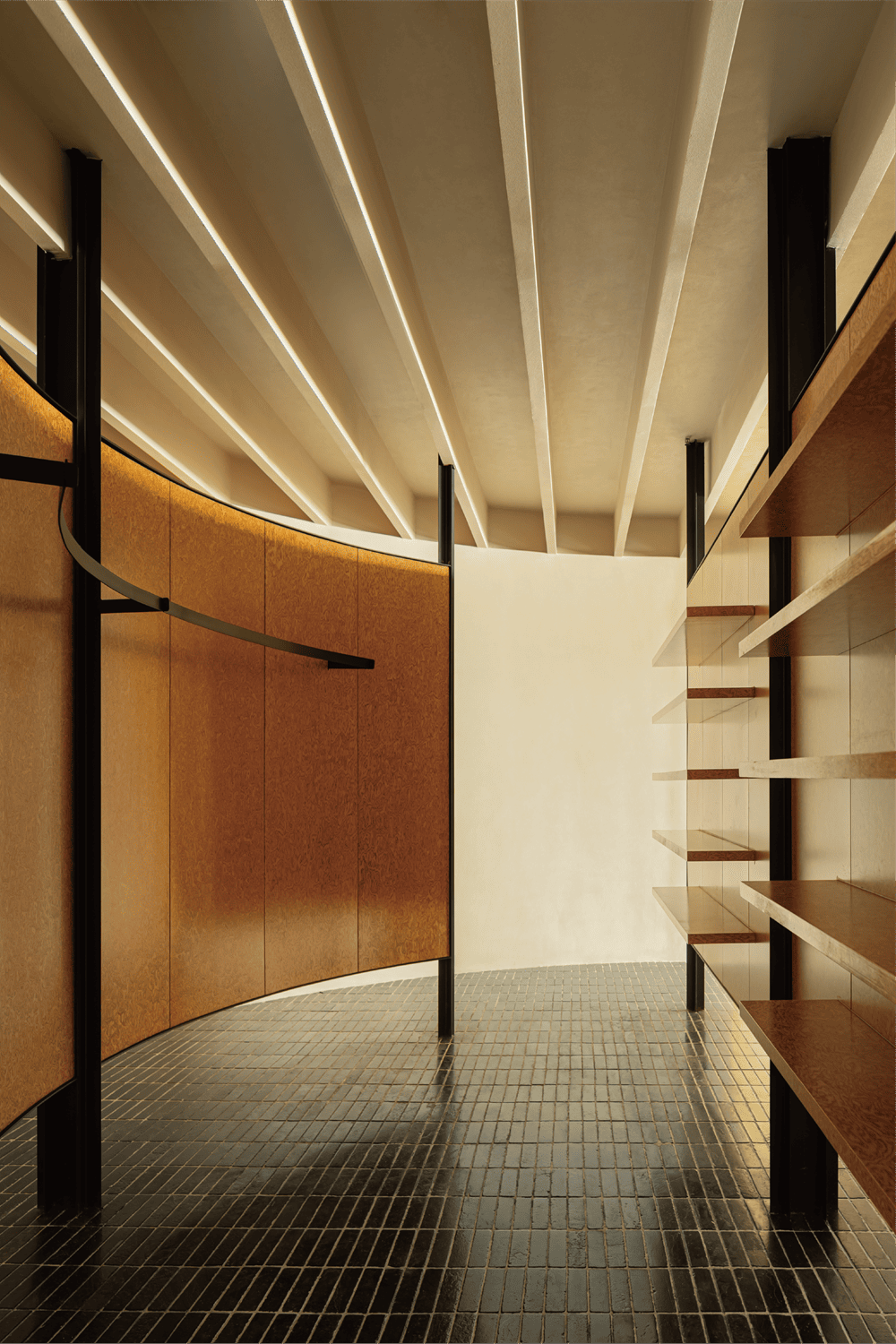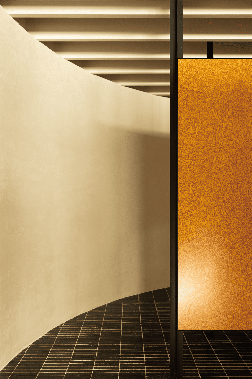 天花板和地面使用了重复的线条,而墙面的处理则更为简洁。设计团队希望通过张弛有度的表达,找到“呼与吸”的终极钥匙。