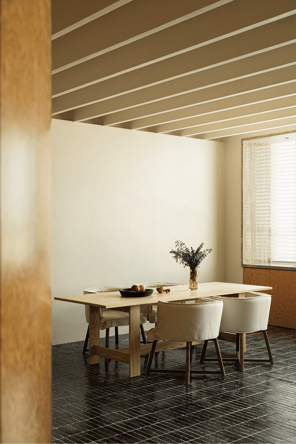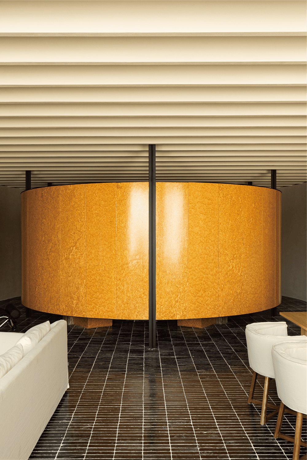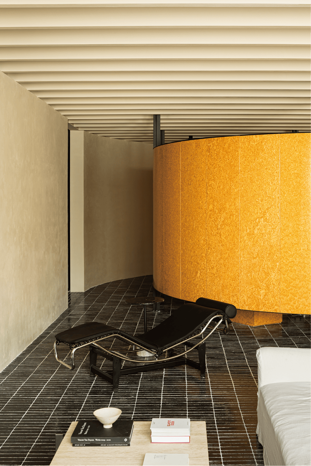 天花板和地面使用了重复的线条,而墙面的处理则更为简洁。设计团队希望通过张弛有度的表达,找到“呼与吸”的终极钥匙。