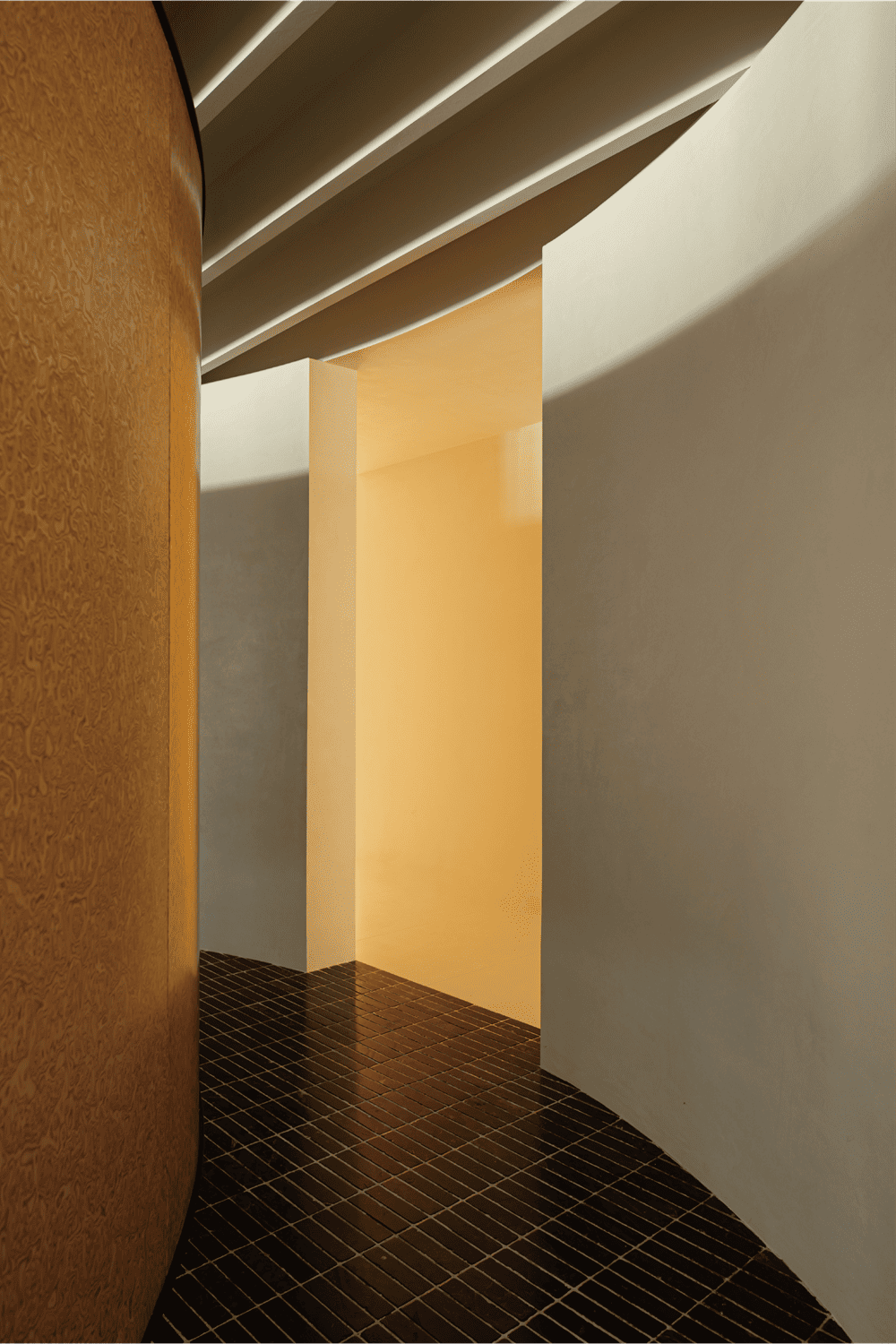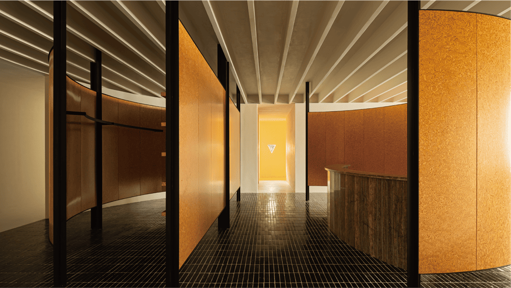 In terms of materials, we primarily use natural materials. We chose brightly colored wood veneers on the divided circle, aiming to guide the flow of movement and provide a fresh and interesting color experience for the entire space. Repetitive linear patterns are used on the ceiling and floor, while the wall treatment is cleaner. We hope to find the ultimate key of "Breath and Respiration" through a balanced expression of tension and relaxation.
