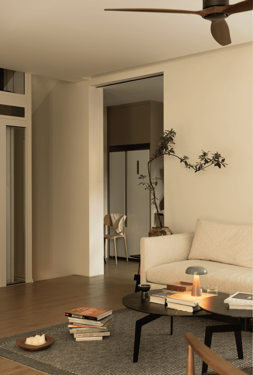 屋主Eli表示,他想要的这套住宅,松弛是主旋律。因为工作关系早年便与海外地产结缘,终年奔波于世界各地的他,花团锦簇,乃或是清澄白鹭。最终还是回到一部老电影般地,低饱和色调的黄橙。空间的一切都极具写意氛围:与自然相融合的,纯天然的材质,温润的色调,轻缓地,像是呼吸频率。通过不被约束的功能布局,让空间变得更有舒缓的生活气息,同时不乏诗意的体验感。