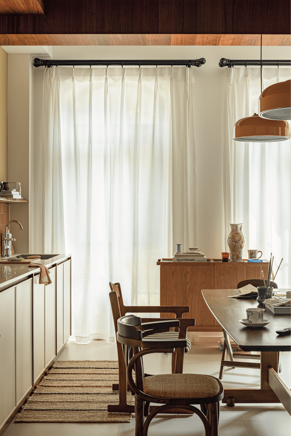拍摄时,这栋房子已经入住6个月,设计团队只对屋内的陈设进行了细微调整,尽可能还原屋主真实的生活和工作状态,在生活的基础上重新发现美。