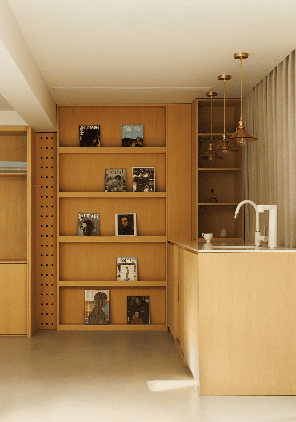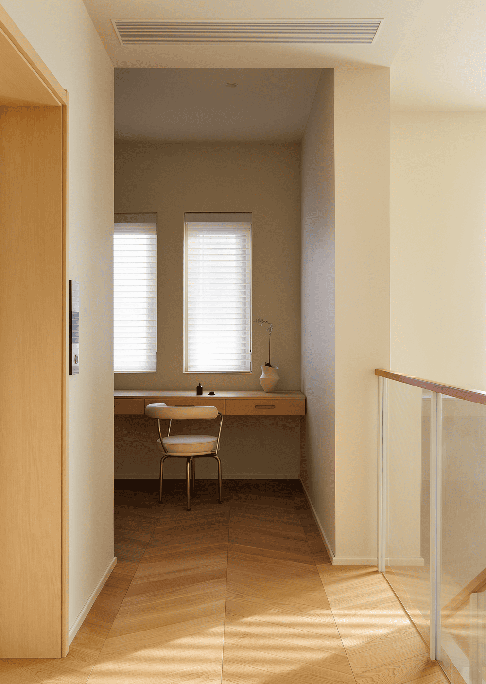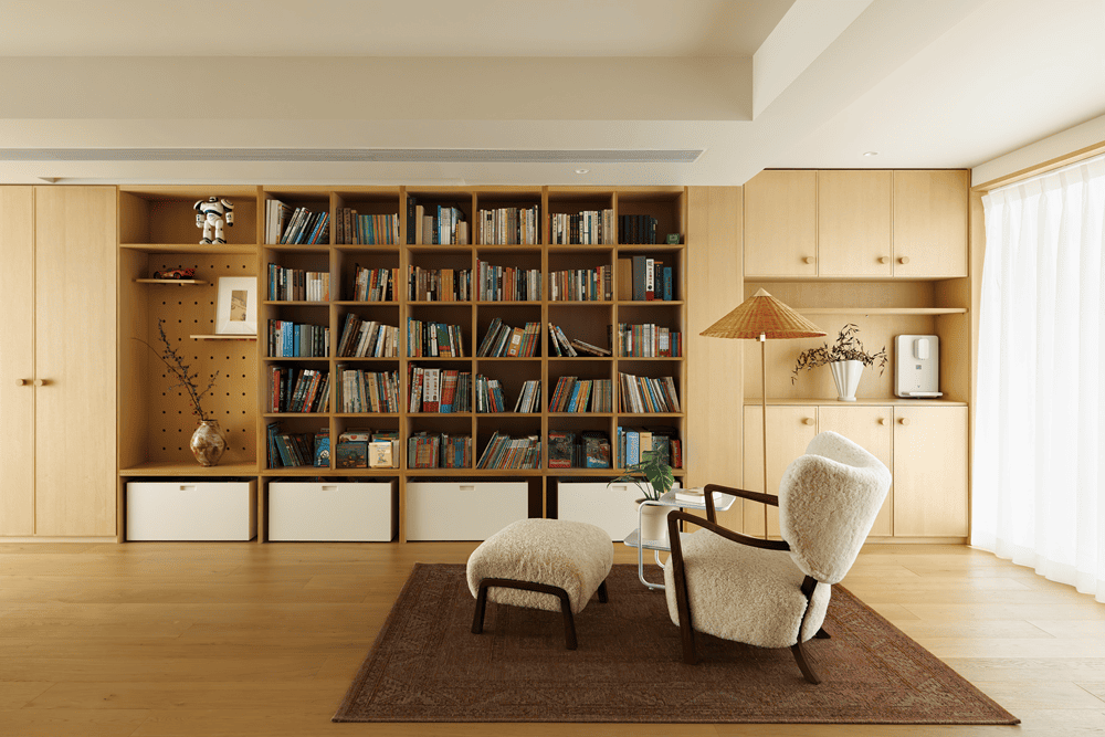 The second floor houses the children's bedroom and the family study. In the family study, ample natural light pours in through the large windows, and the light, texture, proportion, volume and rhythm are carefully crafted to provide a warm and cozy environment for children's study and parental companionship.