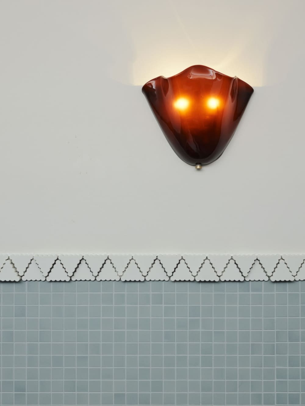 We staged colour intensities and lux levels, adding a sprinkling of soft gem-toned panes surrounding an apricot-hued front door.