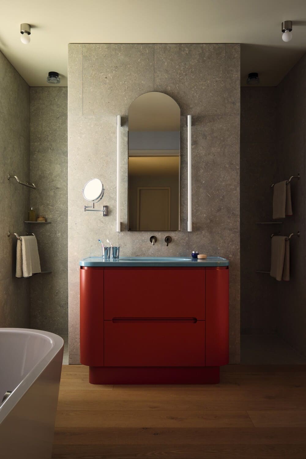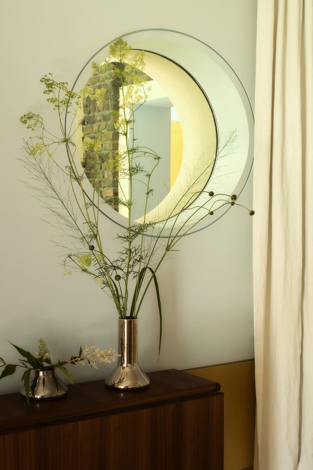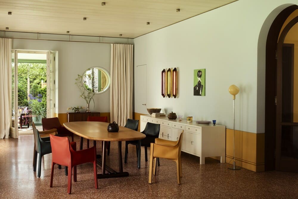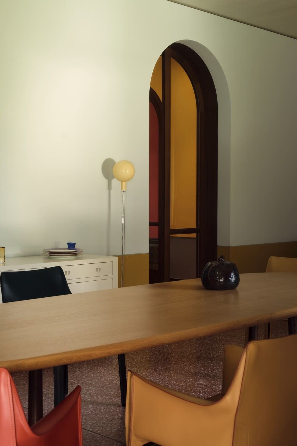 The staircase connecting the floors was rebuilt, and as a central motif of the redesign, Pöppler gave the passageways round arches. He opened up the conservatory entrance to make the space feel larger, just as he let more light into the house by installing oval wall openings (which he borrowed from Italian designer Luigi Caccia Dominioni whom he admires). Angling window openings are “an elaborate way of making them look larger than they are,” explains the architect, “and are particularly common in Switzerland.”