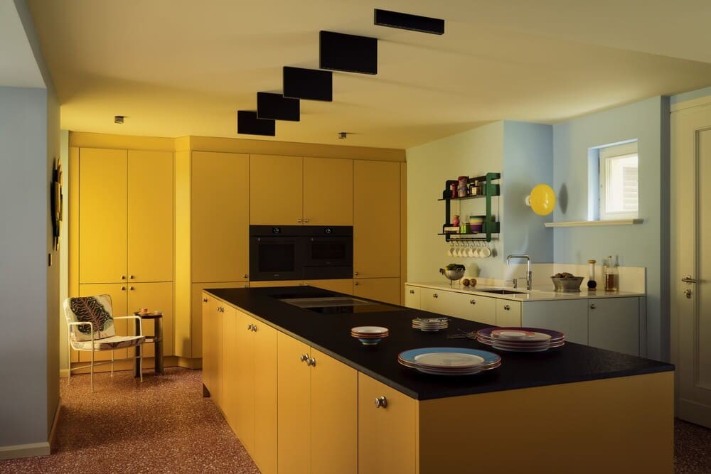 “Outstanding craftsmanship is our passion,” says the Berlin designer. “Our clients enable us to work with great companies over and over again.” Anyone who has spent time in 1920s houses knows that spaces can often feel cramped. Pöppler turned three rooms that overlook the garden into one large living and dining room. He moved the extra-small kitchen in order to redesign a new one with Ofco, a kitchen interior company based in the city of Iserlohn, Germany, and created a suite on the second floor that includes a bedroom, dressing room, and large bathroom.
