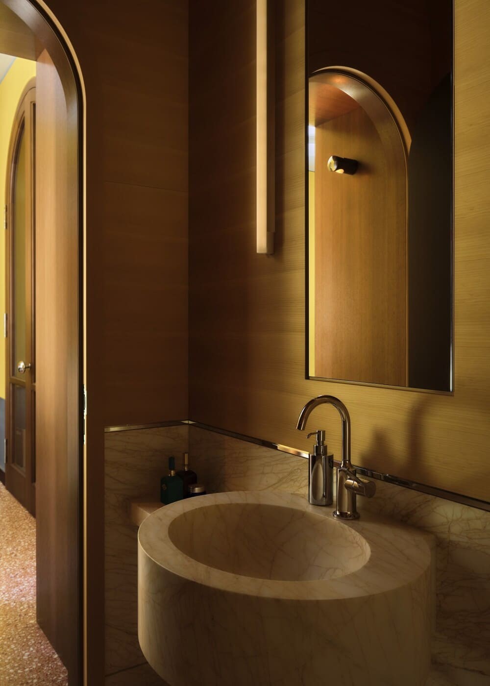奥斯特豪斯还积极参与了德国手工艺联合会(Deutscher Werkbund)的活动,该联合会成立于 1907 年,成员包括建筑师、工匠和设计师,他们致力于将艺术与手工艺结合起来,以应对德国快速的工业化进程,正如早期的英国工艺美术运动一样。这一背景为 Pöppler 在设计别墅时提供了一些决定性的线索。选择合适的材料是一方面。但你还需要知道如何按照正确的标准加工这些材料的人,尤其是因为该项目是一个 “毫米建筑工地”,据 Pöppler 称。也就是说,考虑到翻新工程的精确设计,建筑工地上的每一毫米都至关重要。