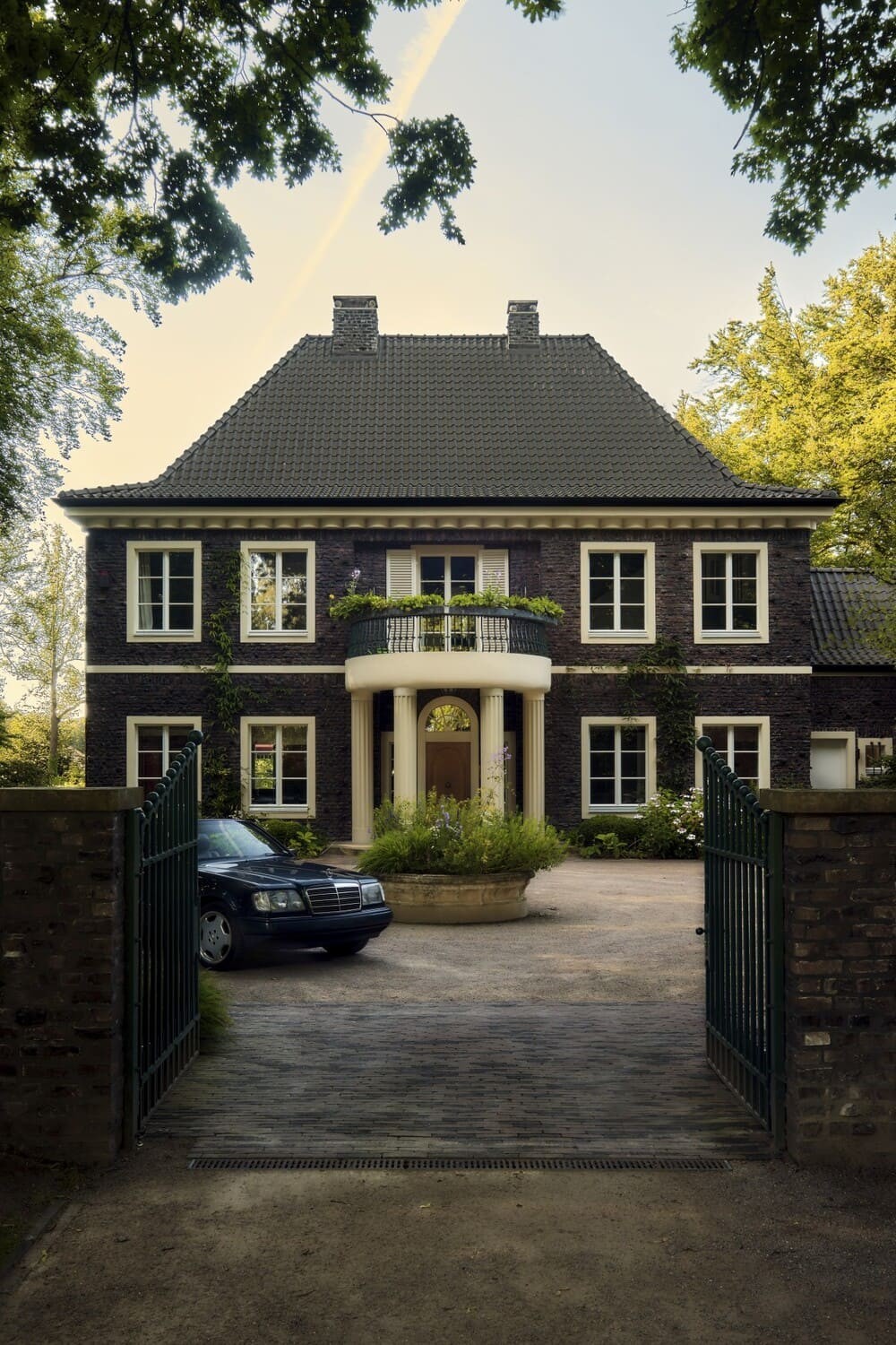 这座别墅曾在 20 世纪 80 年代进行过一次全面翻修,尽管其地标性建筑的身份使其外立面保持原貌。然而,别墅内部却没有保留任何原物,一切都是新的。就连公园大小的花园,在 Pöppler 启动项目时也已破败不堪。原来的房子有它的魅力,作为霍恩哈根花园城市的一部分,它也具有历史意义。附近还有霍恩霍夫(Hohenhof)别墅,这是一座由比利时建筑师亨利-凡-德维尔德(Henry van de Velde)于 1908 年设计的别墅。Van de Velde 是新艺术运动的主要倡导者,他为艺术赞助人卡尔-恩斯特-奥斯特豪斯建造了这座住宅,奥斯特豪斯早逝后,他的收藏成为埃森 Folkwang 博物馆的核心。