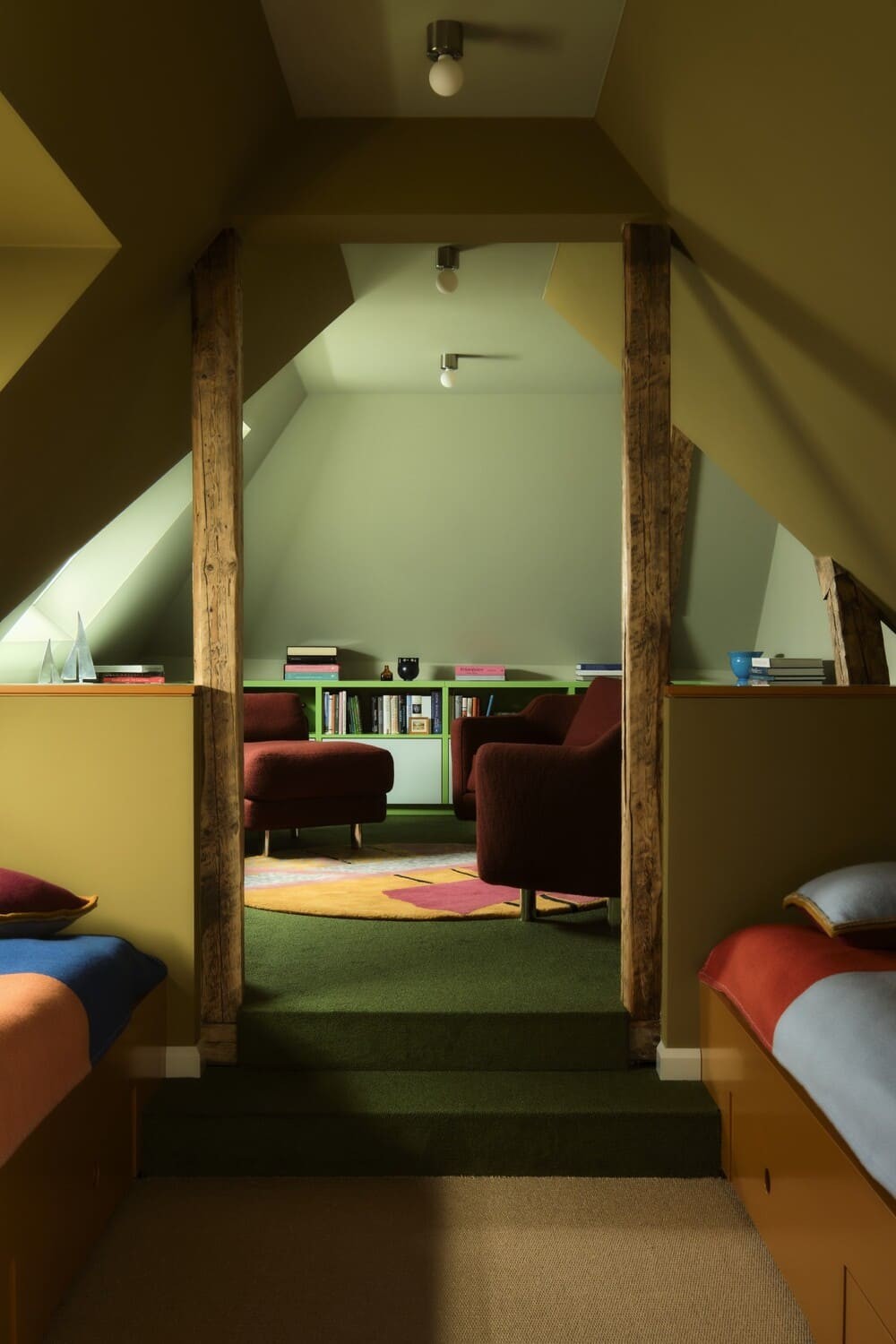 从柏林皇家花园学院为他们建造的公园中可以看到,皮特尔-安默夫妇非常喜欢鲜花盛开的草地,公园里有一个天然的大水池,看起来就像一个游泳池。这座温馨之家的家具既有经典设计,也有 Pöppler 自己的家具系列。沙发和扶手椅的面料来自 Dedar、Bute、Svenskt Tenn 和 Le Manach,后者现在是 Pierre Frey 品牌下的一个系列,Pöppler 喜欢与该品牌合作,因为他认为该品牌在定制方面比其他任何品牌都更具灵活性。或许是出于对亨利-范-德-维尔德(Henry van de Velde)的霍恩霍夫(Hohenhof)的敬意,就连门把手也是由比利时的一家铸造厂专门为别墅设计制造的。经过两年的全面翻修,正是这些看似微不足道的细节让 “冲动买家 ”普特-阿默尔相信,这栋别墅就是他们现在的家。“我们会在未来很长一段时间里享受它,我确信这一点"。