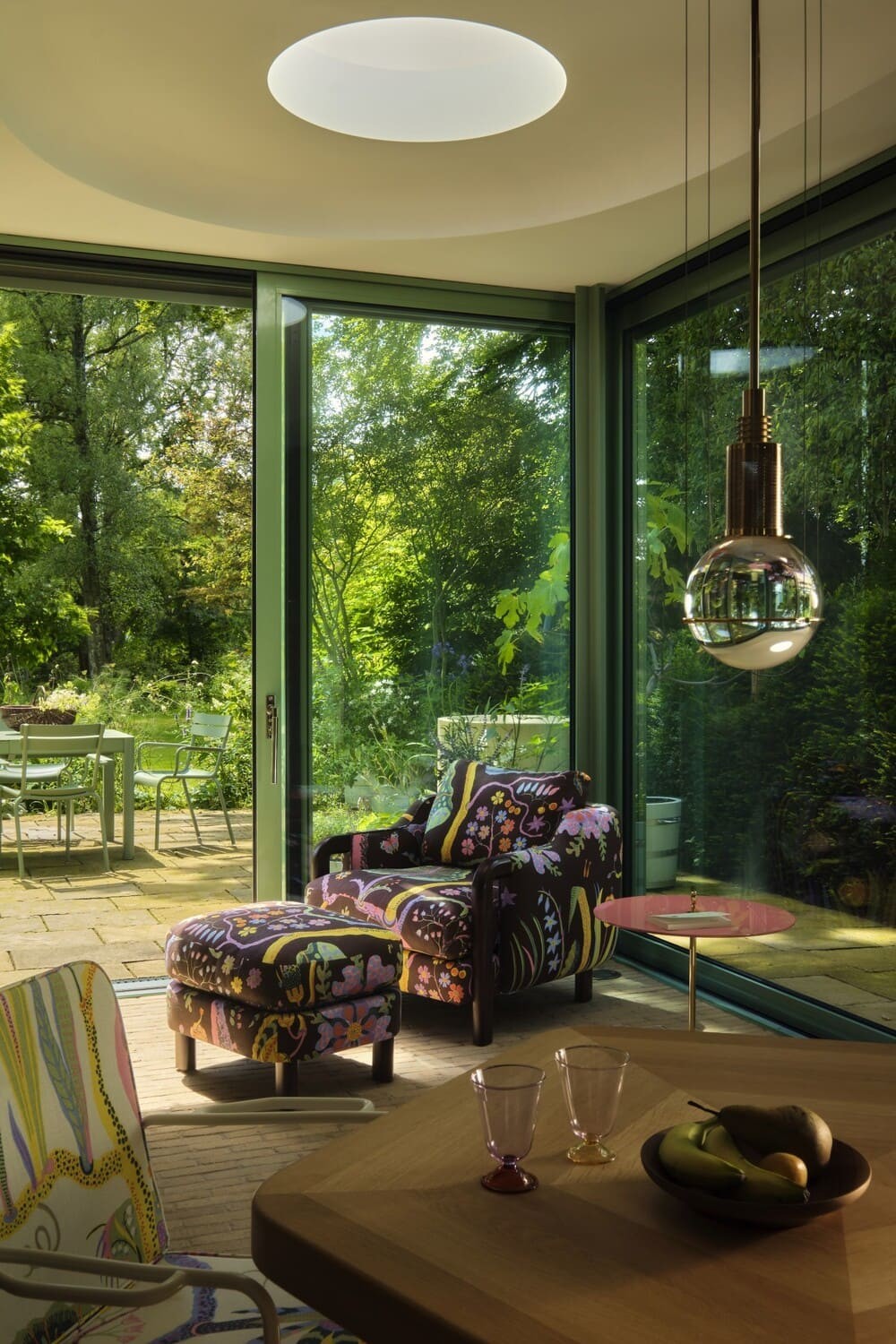 此外,Freudenberger 还负责对花园房间的天花板进行特殊处理,这也是 Pöppler 的要求。“这是游艇上常见的一种木制品。压制的木板使木质格外坚硬,并赋予其不规则和生动的外观。车间里有两个木匠,他们唯一的工作就是用更好的木板替换过大的窟窿"。拥有医学博士学位的 Pütter-Ammer 和她的丈夫是以可持续发展和自然疗法为基础经营医疗公司的第三代传人,他们不仅经营自己的养蜂场,还经营烹饪生意。换句话说,家里和花园里通常有很多事情要做。“我们经常在这里接待客人和进行娱乐活动,“Pütter-Ammer 说,”因此,我们很自然地要遵循我们的价值观。