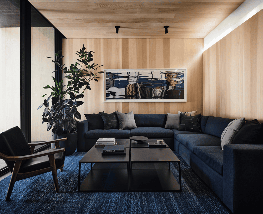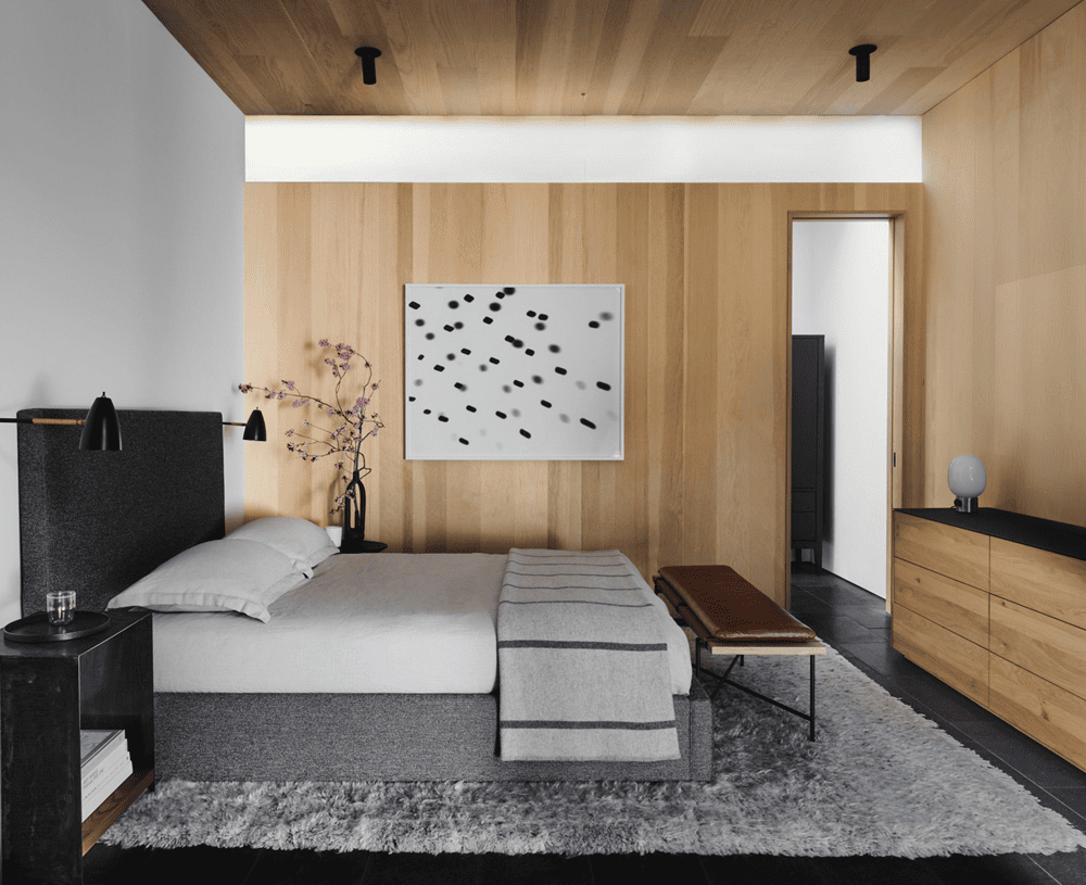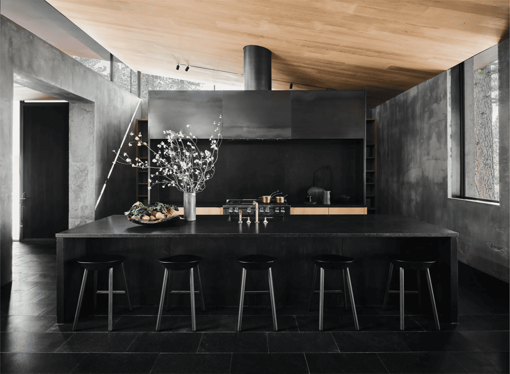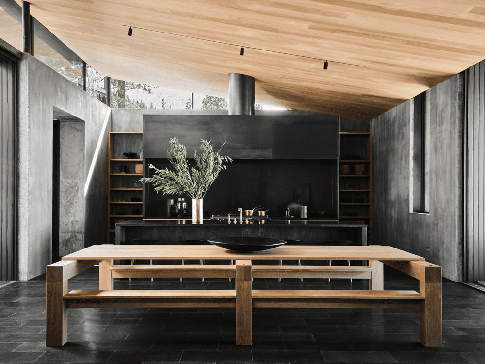 ‘For anyone who steps into this home, they will immediately feel a lot of inspiration from Donald Judd’, says Nicole Hollis. This refers to the sleek minimalism prevalent throughout the space, but it's clear that the team and homeowners were looking for more than just a Donald Judd-esque vibe. ‘The home is built around a central courtyard that is partially covered by a cantilevered roof,’ explains Nicole Hollis ’With all four windows surrounding the internal courtyard and the firelight from the campfire pit illuminating the entire house, the space feels like a camping site like a campsite.’