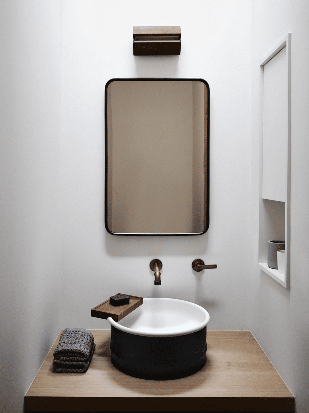 Nicole Hollis解释说“我们有意不做悬挂在岛台或厨房桌子上的照明。我们保持了极简”。Trollope夫妇的厨房包括E15公司生产的漆黑的橡木凳子,以及达芬奇大理石公司生产的带有拉丝效果的寒武纪黑色花岗岩的台面和黑色防溅板,天花板上的木板是吉姆-莫里森建筑公司的原糖松木。