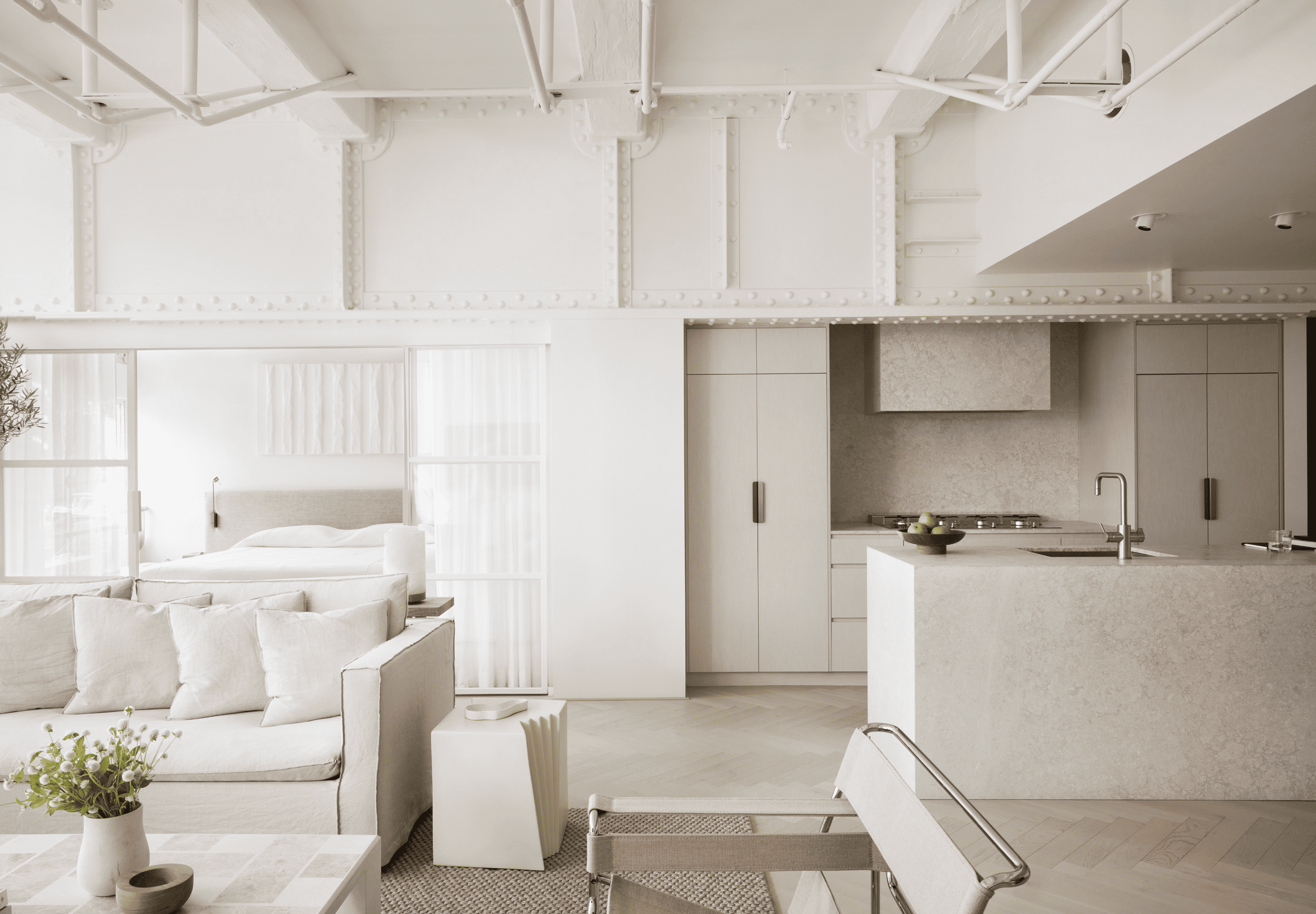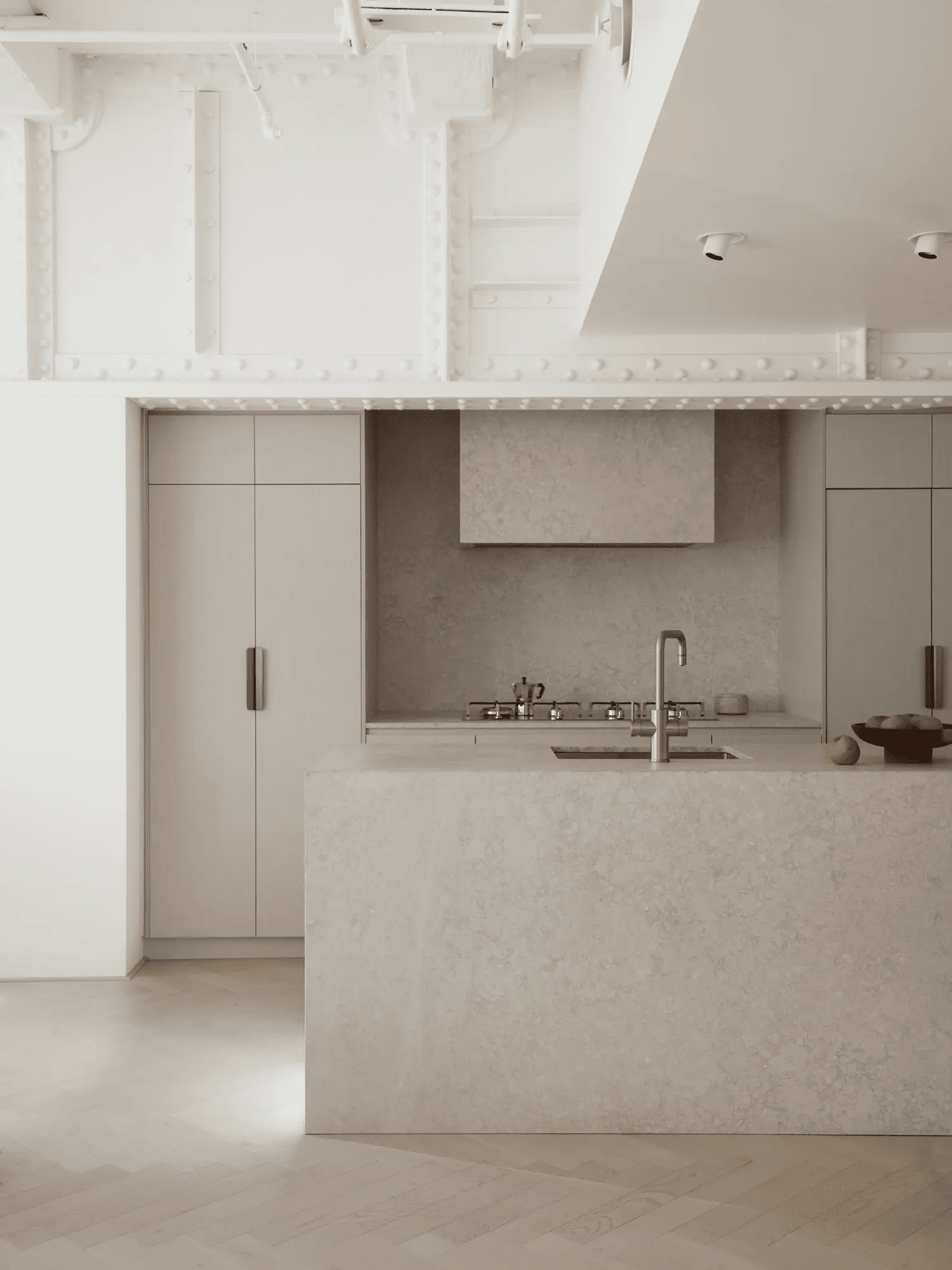 最终,这个项目成功地将历史遗产与现代生活需求无缝连接。通过保留建筑原有的结构美学 —— 如高耸的裸露横梁天花板、钢桁架和大型工业风窗户,并注入简约精致的设计语言,Lawless & Meyerson打造了一个既尊重过去又面向当下的家。