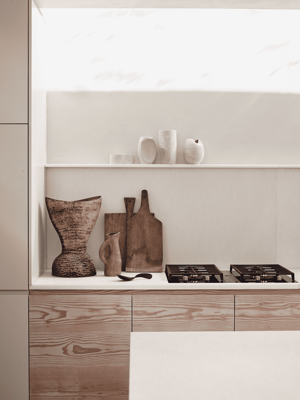 The sense of craftsmanship and sophistication is further enhanced by an eclectic selection of antique, mid-century and contemporary furniture pieces by Sophie Pearce of Beton Brut, and a carefully curated art collection of tactile beauty and simple elegance courtesy of Laura Fulmine of Modern Art Hire.Daytrip Studio often collaborates with artists, designers and makers to complement and enrich their designs, and this project ultimately proved to be no exception.