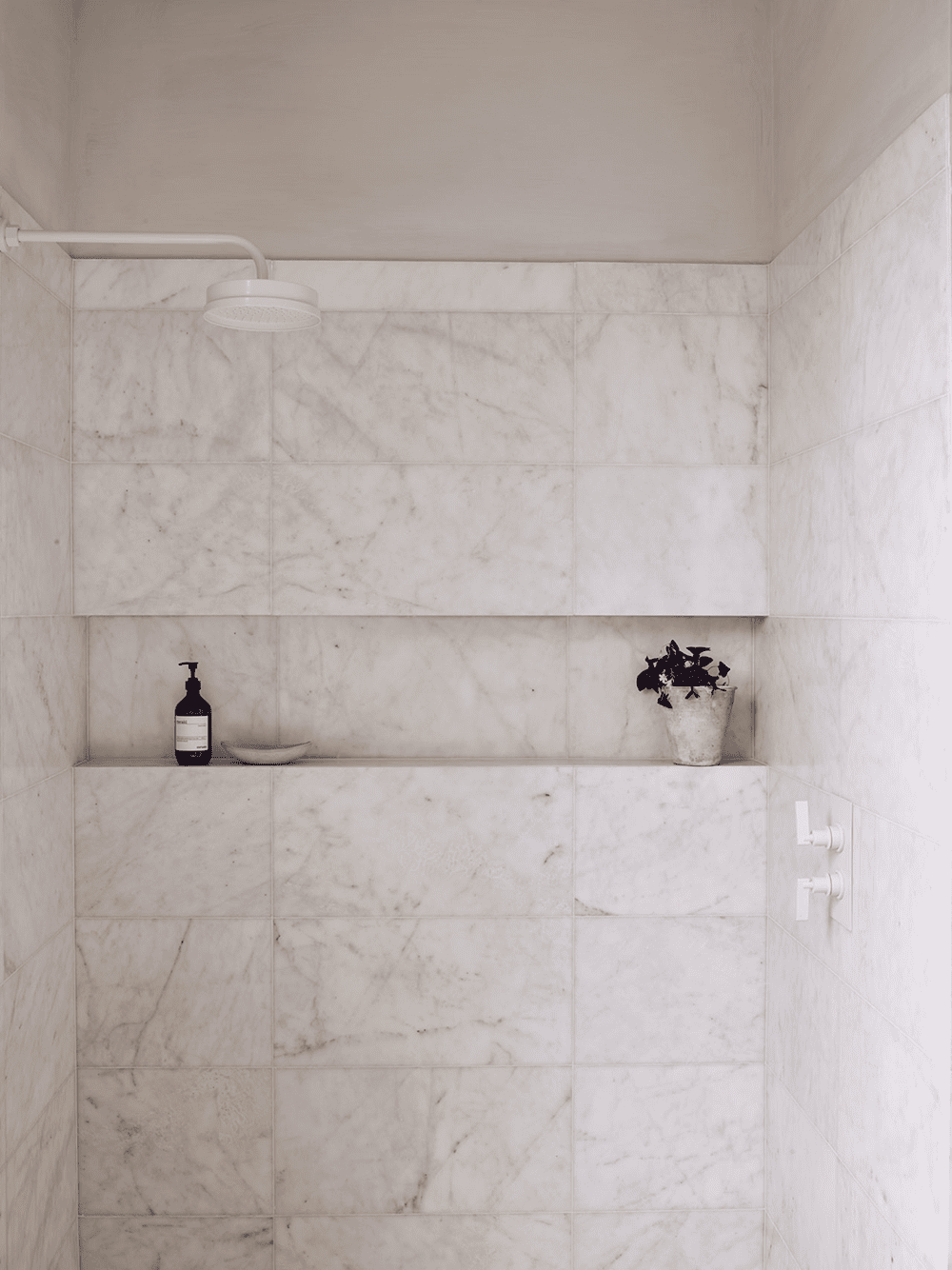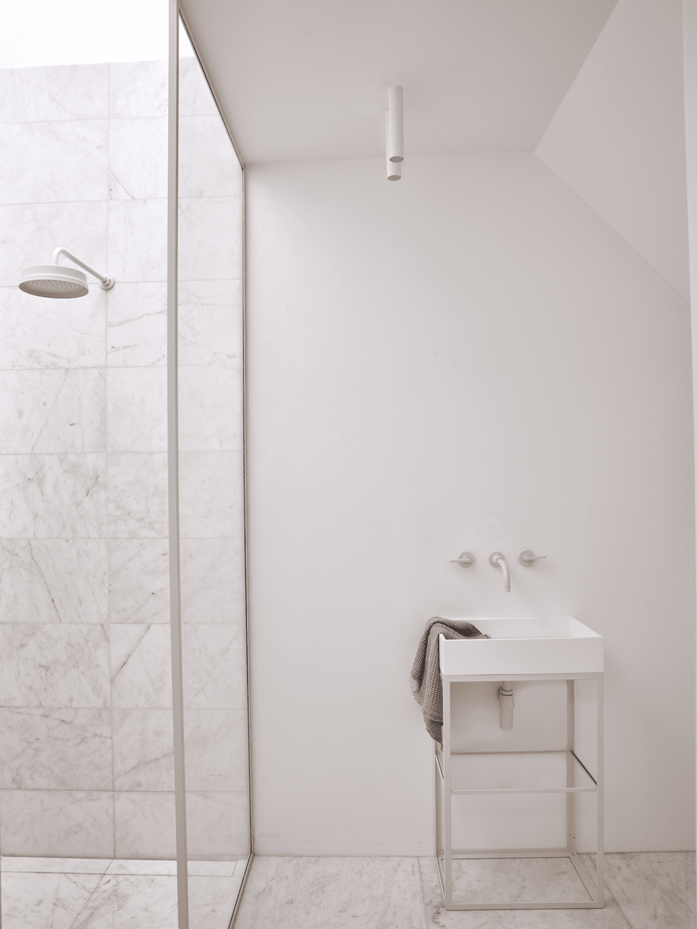 Soft colours and soothing textures such as pale lime-washed walls, off-white powder-coated metalwork, polished concrete floors and natural wood finishes wrap the old and new parts of the interior with sublime elegance, as do the classic Calacatta marble and deep blue crackle-glazed Lavastone that adorns the master and family bathrooms.