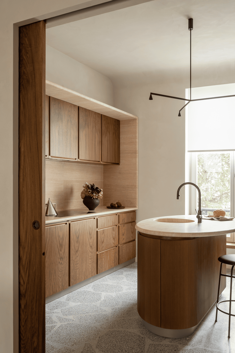 对饰面的节制选择,以及大量使用弧形以避免硬阴影的形式策略,都有助于营造一个宁静的空间,使声音、光线和视觉都成为一个连贯整体的一部分。