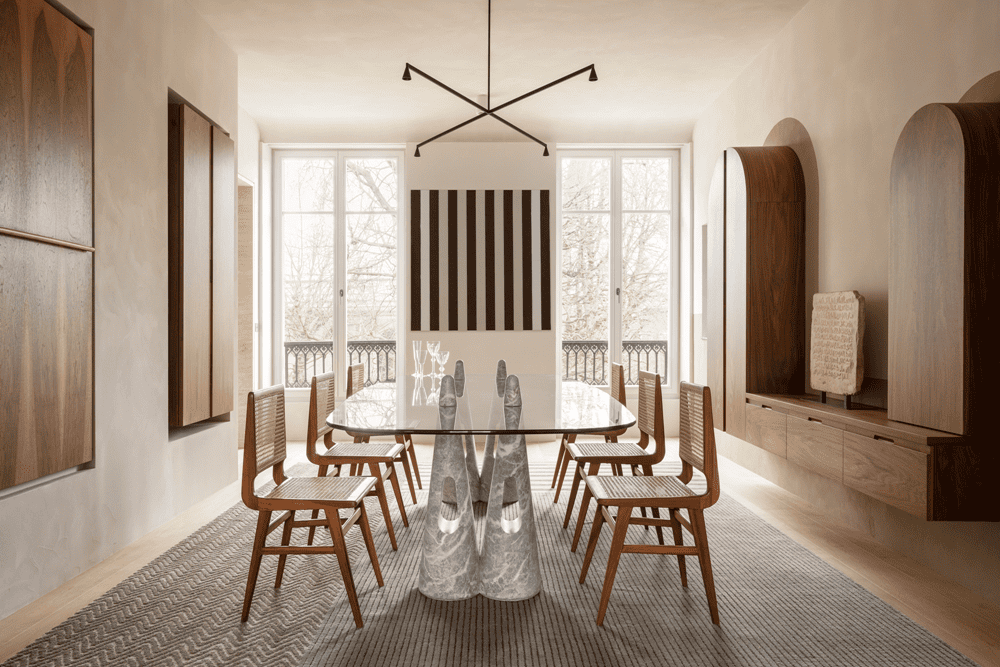 家具的设计和选择,以及公寓内所有艺术品的手工挑选,都成为单一空间叙事和体验的一部分。