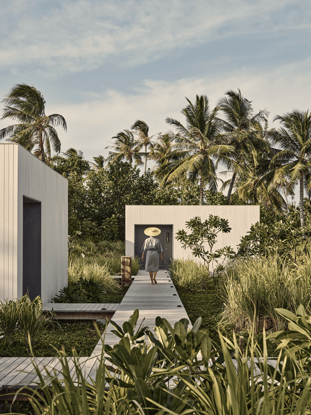 抵达后,客人沿着自然小径到达他的别墅。岛上的一个新面貌出现了,有可能是一个充满惊喜的沉浸式体验,有可能是一个有待发现的隐藏的宝藏。