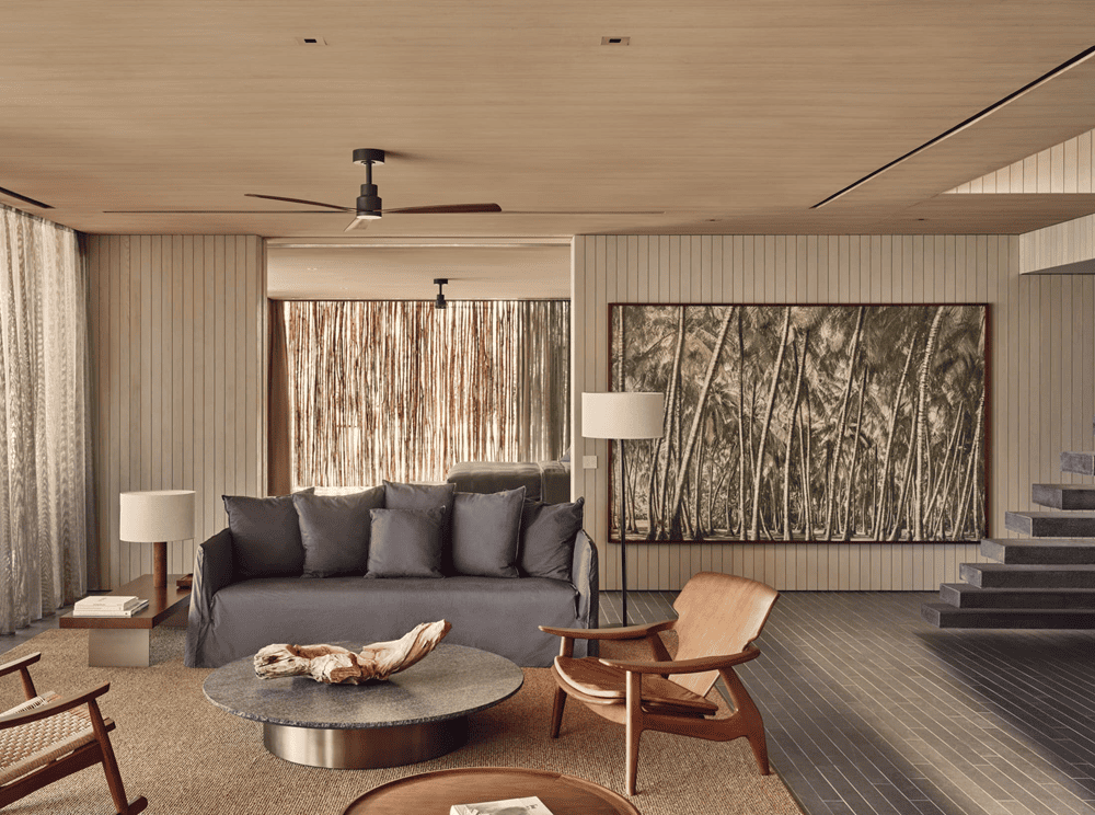 Studio MK27专为Patina Maldives定制的木制家具融合了微妙的实用和美学设计特点,从带有集成控制面板的床架到隐藏式设备充电隔间,提升了室内体验。
