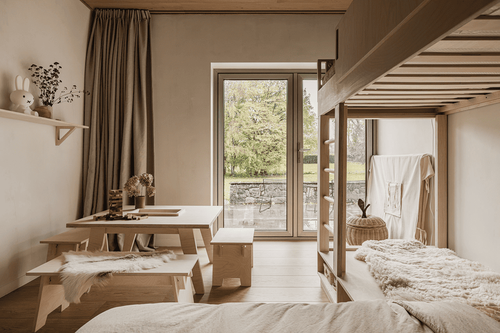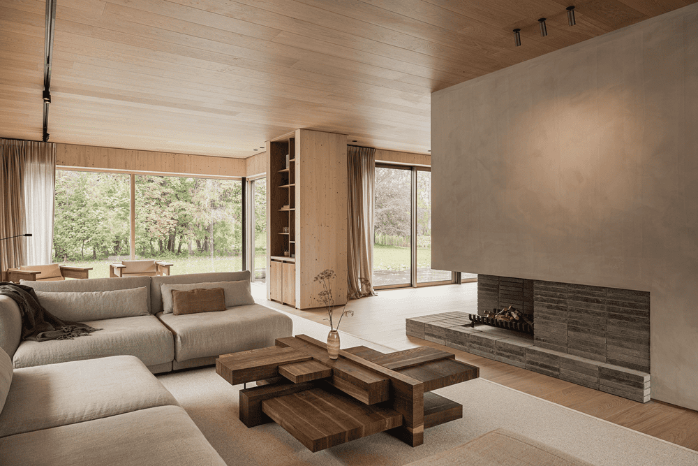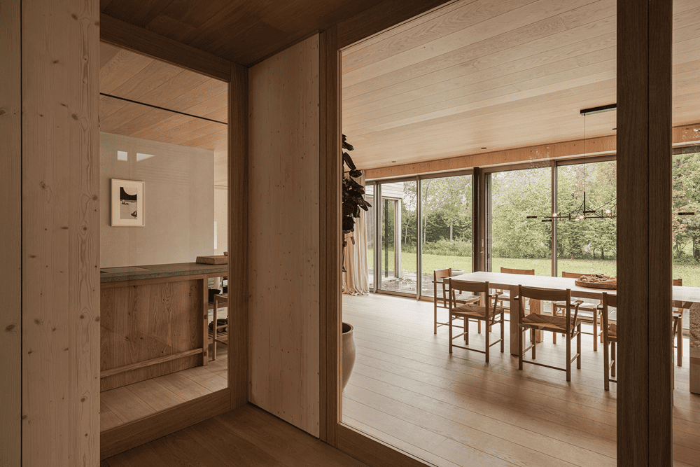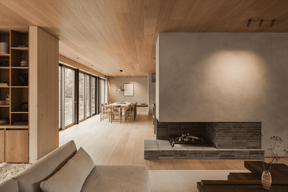 首先要做的是重组布局。一个笨拙的体量和分隔主屋两侧的多面墙壁被拆除。现在,一进入起居室,您就会被田园风光的全景所震撼。