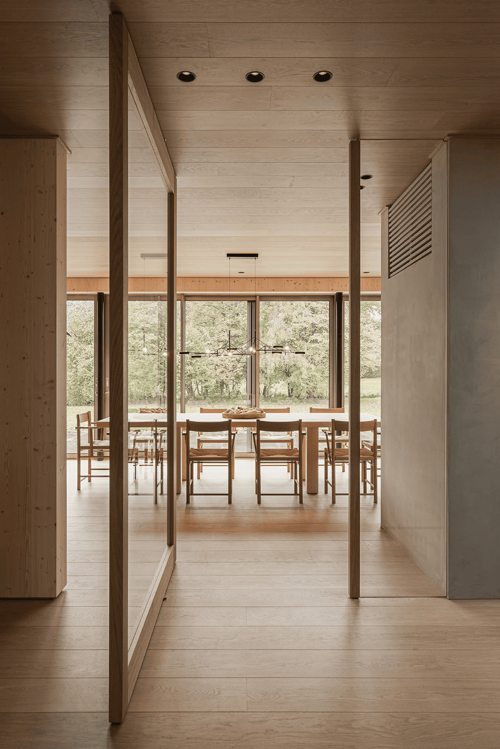 The first intervention was to reorganize the layout. A clumsy volume and multiple walls separating two sides of the main house were stripped down. Now, upon entering and throughout the living area, you will be amazed by the panoramic views over the rural landscape.