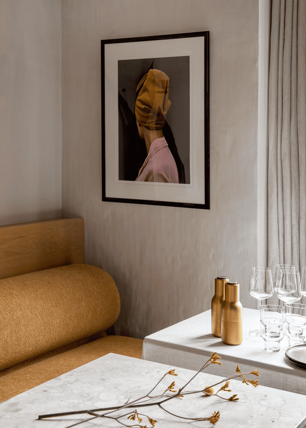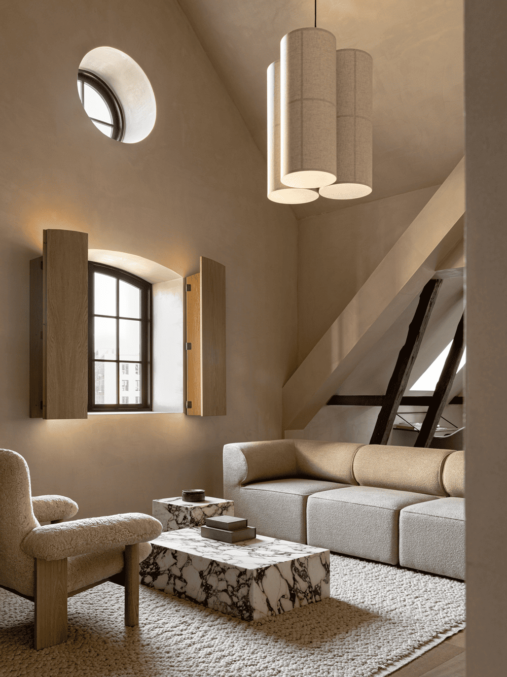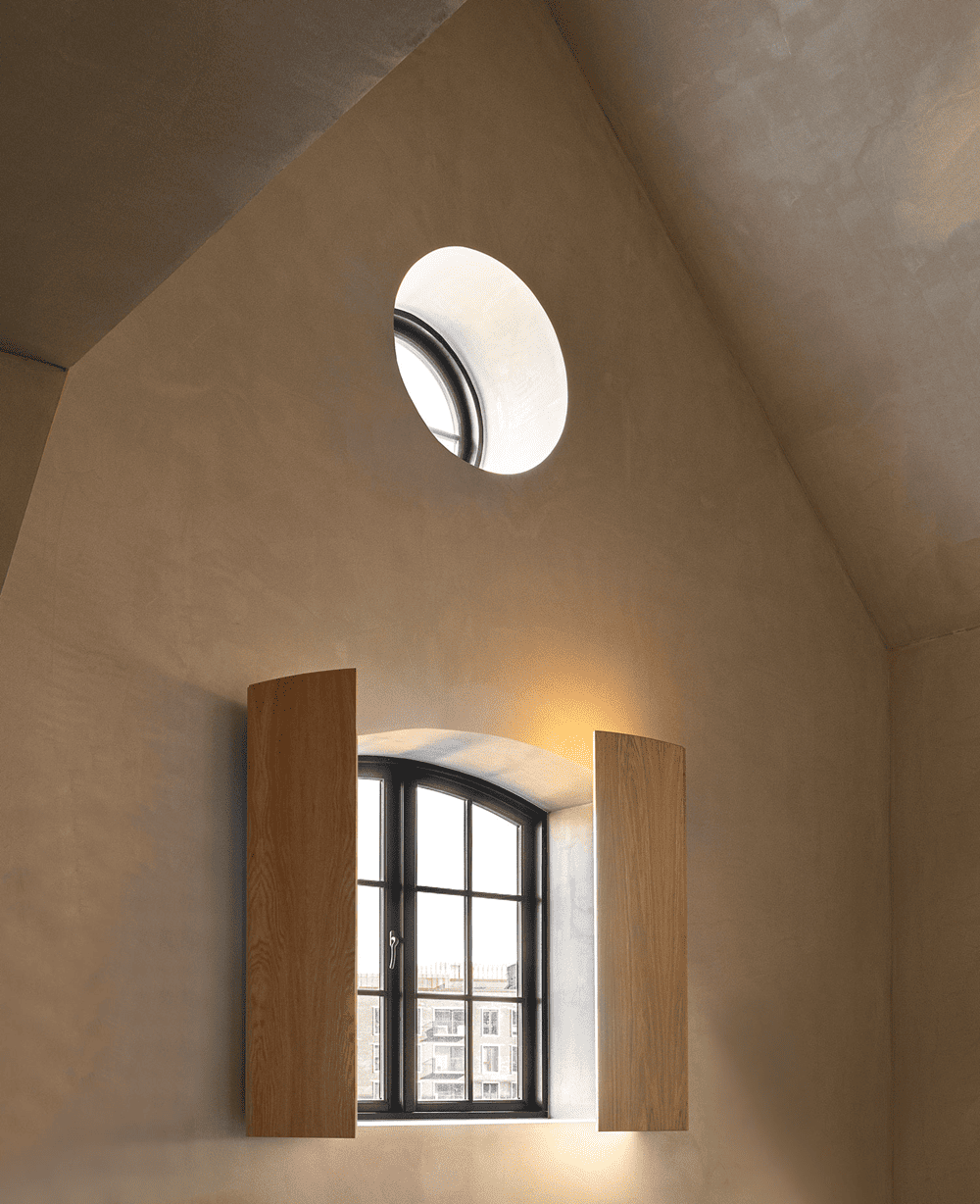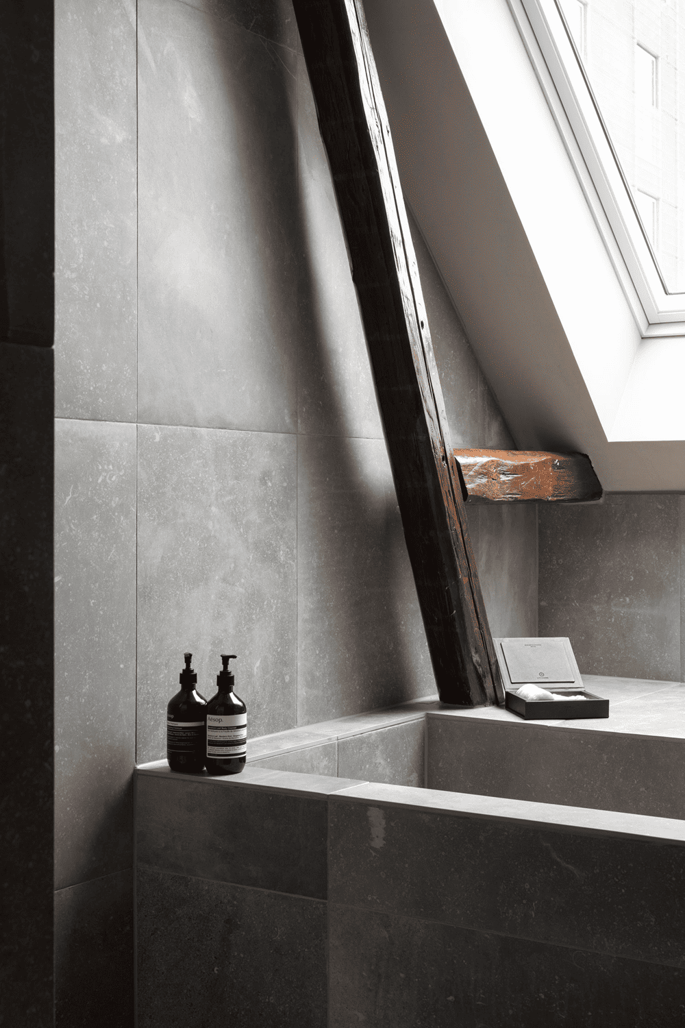 Lead architects Jonas Bjerre-Poulson and Peter Eland of Norm Architects completed a complete renovation of this magnificent 1918 building, one of the oldest in the area. The designers wanted to celebrate the building's historic character by retaining the neo-baroque façade, while telling a contemporary story inside the building, which is shrouded in earthy tones and timeless beauty.
