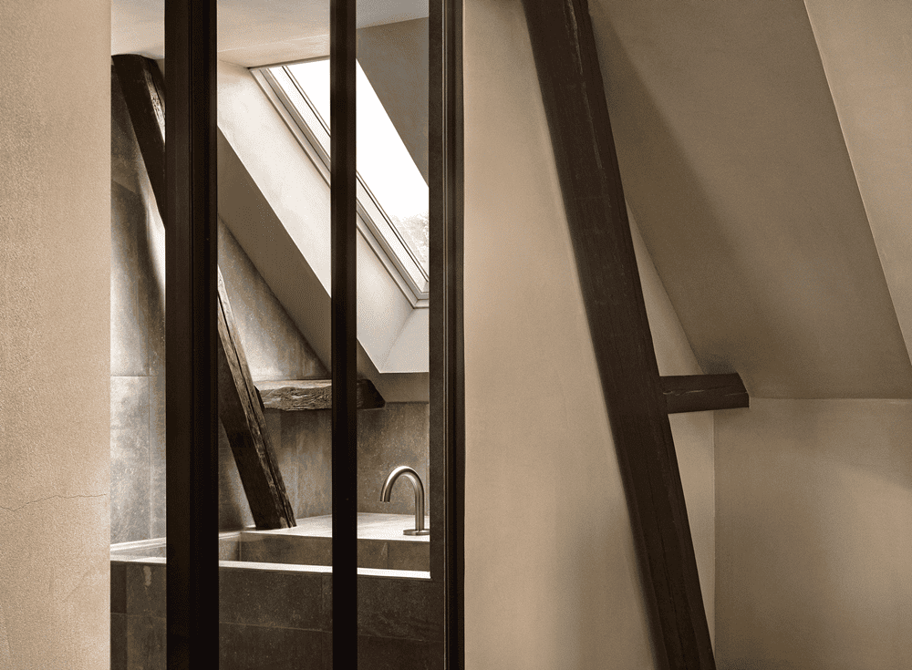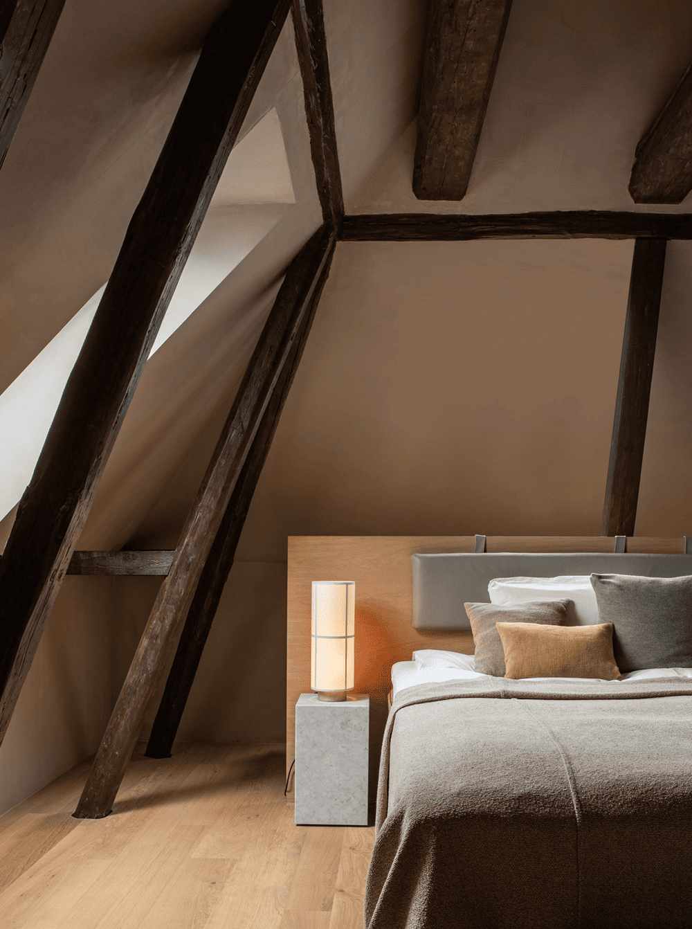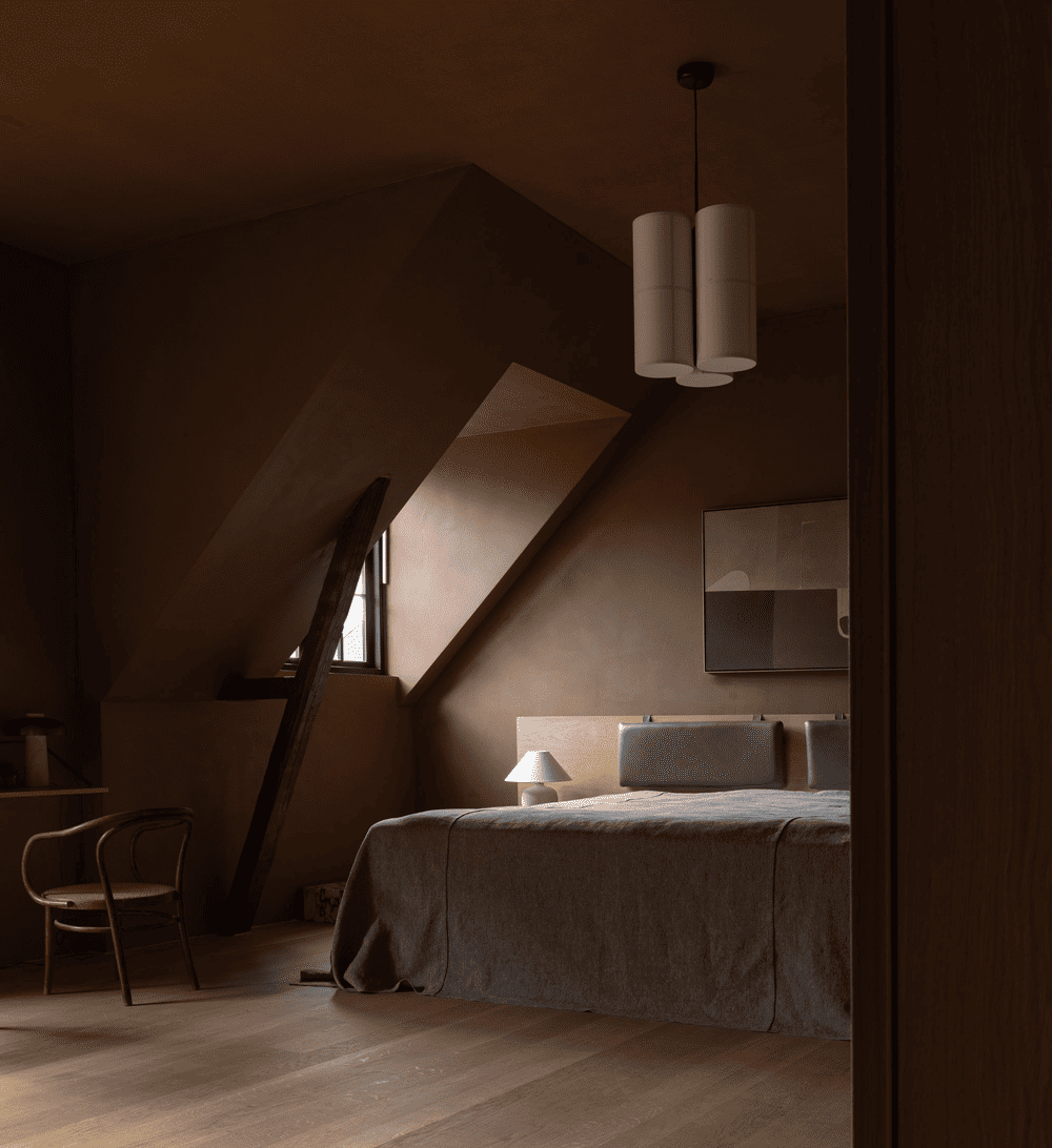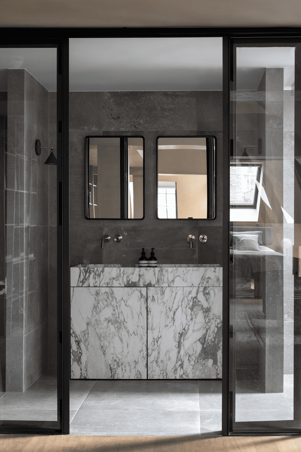 Lead architects Jonas Bjerre-Poulson and Peter Eland of Norm Architects completed a complete renovation of this magnificent 1918 building, one of the oldest in the area. The designers wanted to celebrate the building's historic character by retaining the neo-baroque façade, while telling a contemporary story inside the building, which is shrouded in earthy tones and timeless beauty.