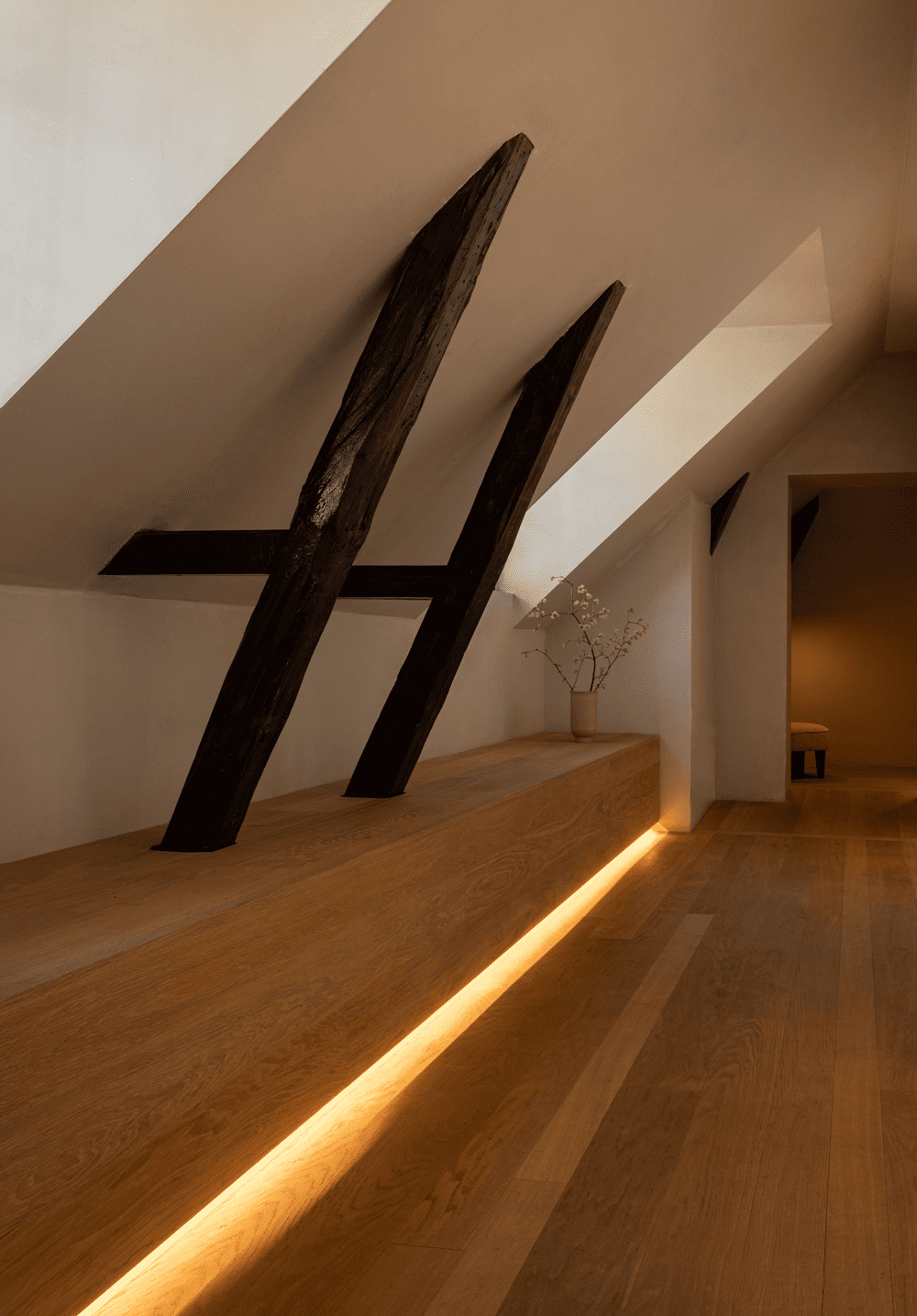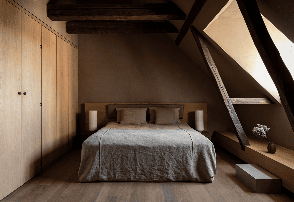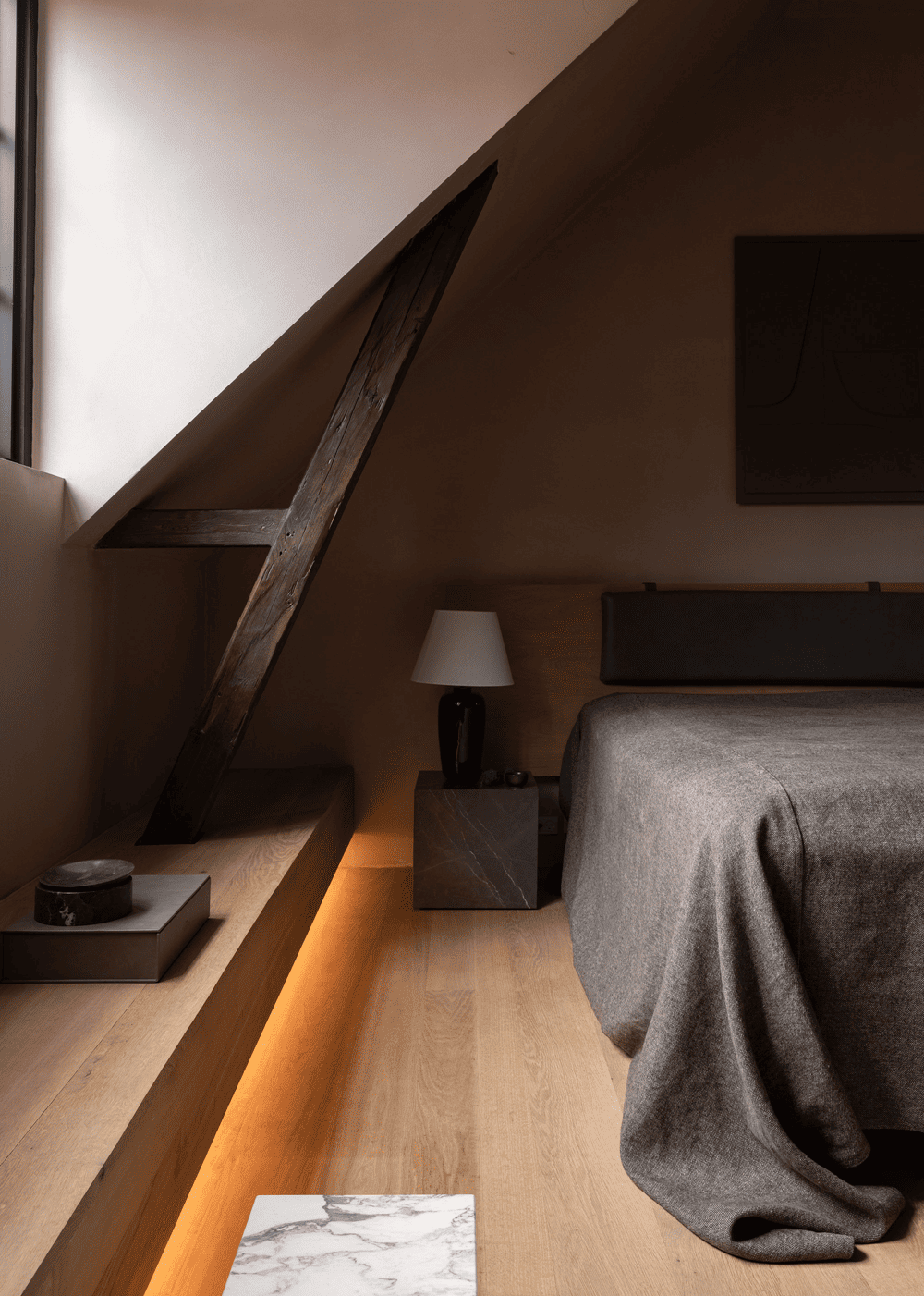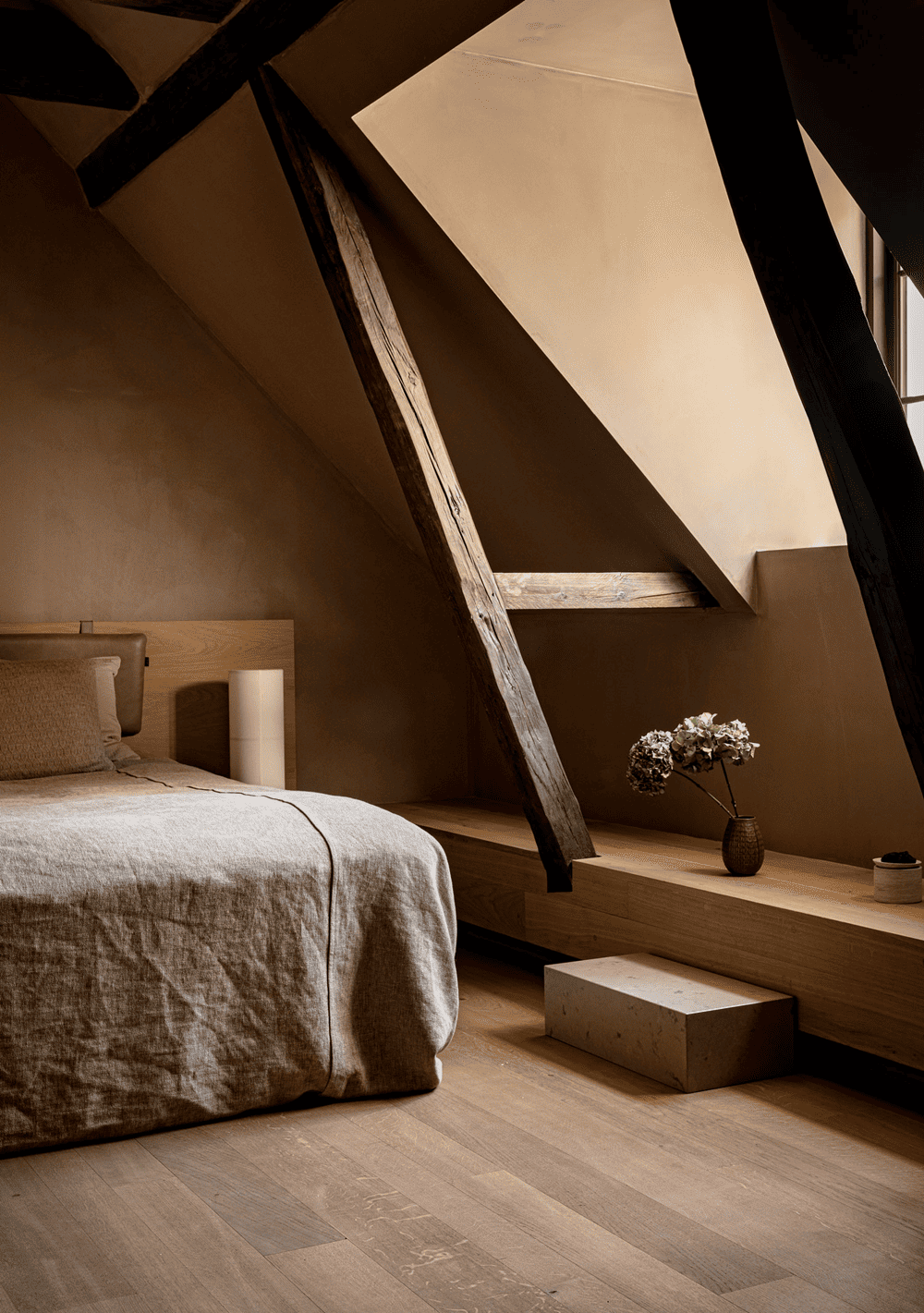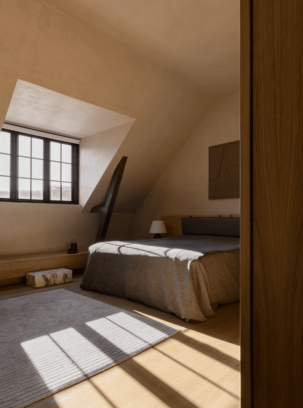Lead architects Jonas Bjerre-Poulson and Peter Eland of Norm Architects completed a complete renovation of this magnificent 1918 building, one of the oldest in the area. The designers wanted to celebrate the building's historic character by retaining the neo-baroque façade, while telling a contemporary story inside the building, which is shrouded in earthy tones and timeless beauty.