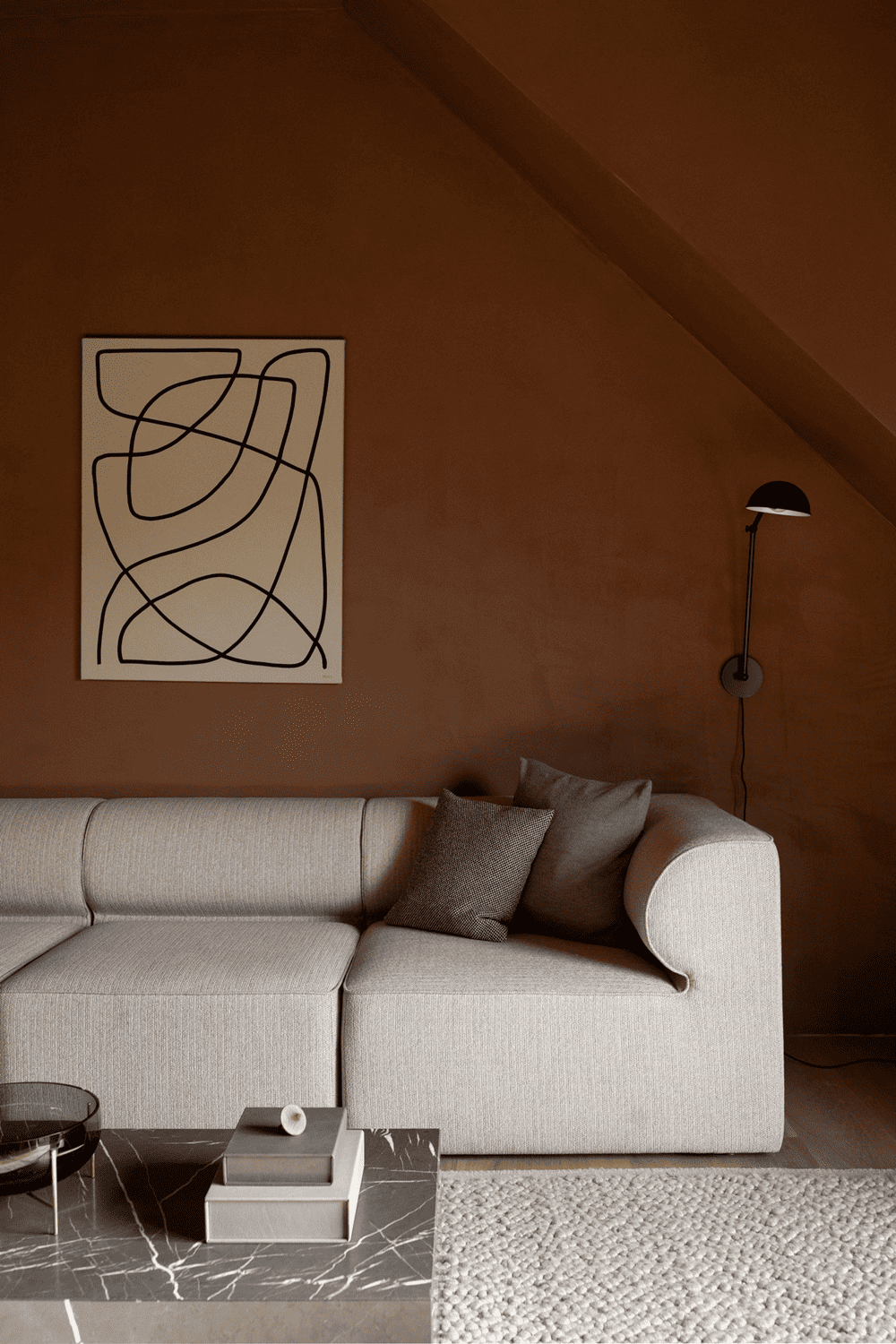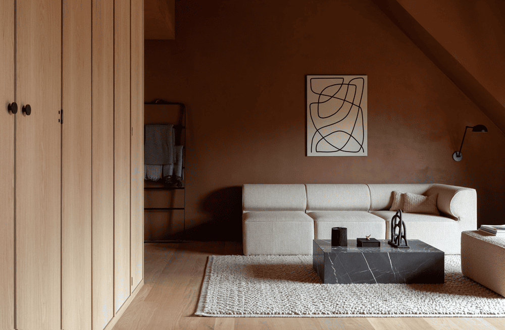 Warm earthy tones give the space a homely feel, while exciting furnishings and artwork ensure an elegant and stylish Scandinavian aesthetic.