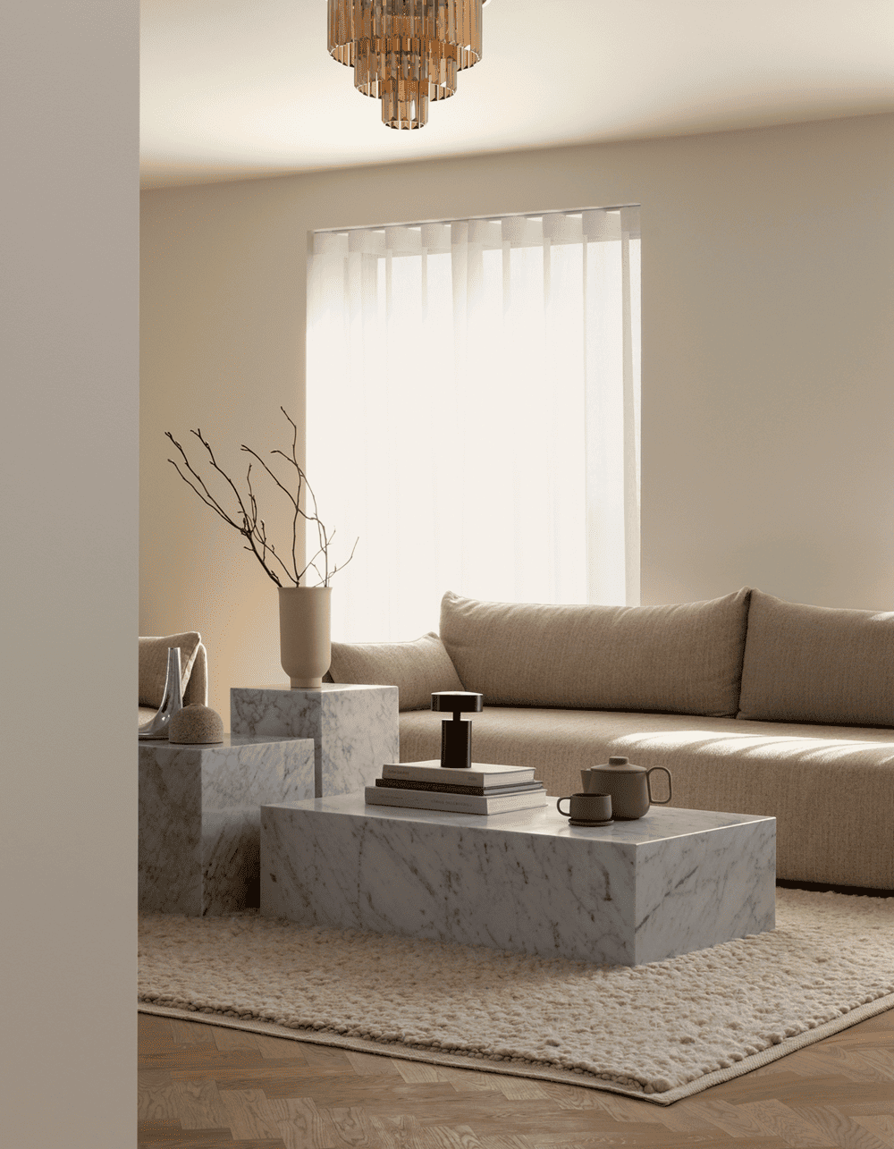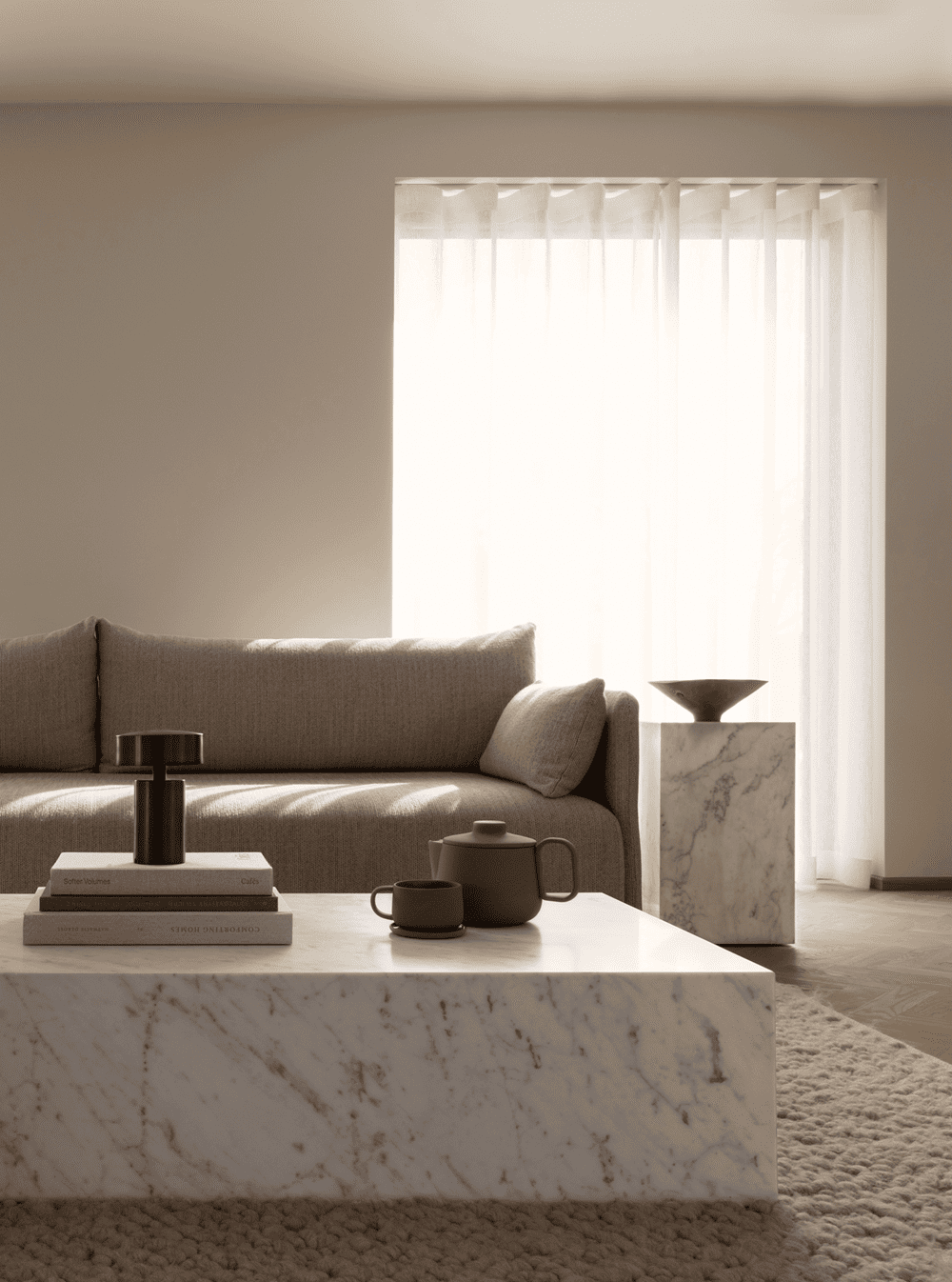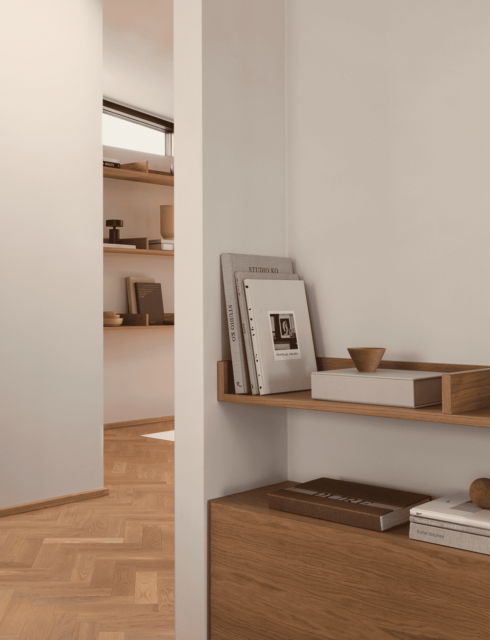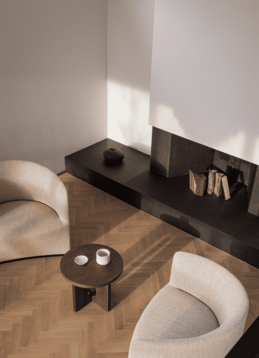 Initially, there were a number of different materials that played a role within this building, which Norm Architects wanted to downplay to create a more coherent and simplified space.