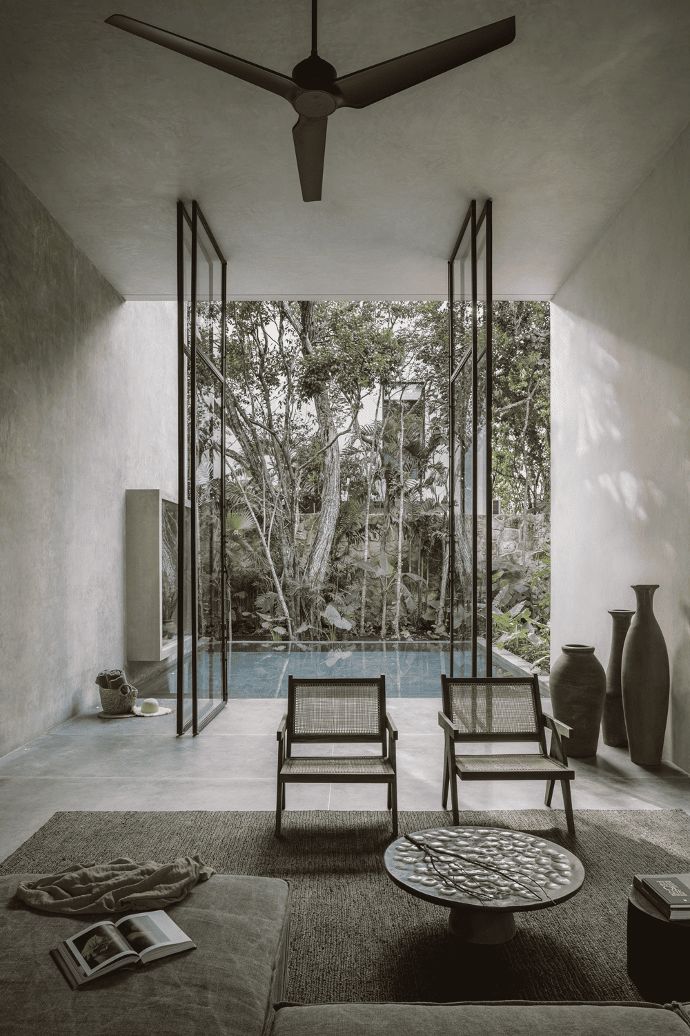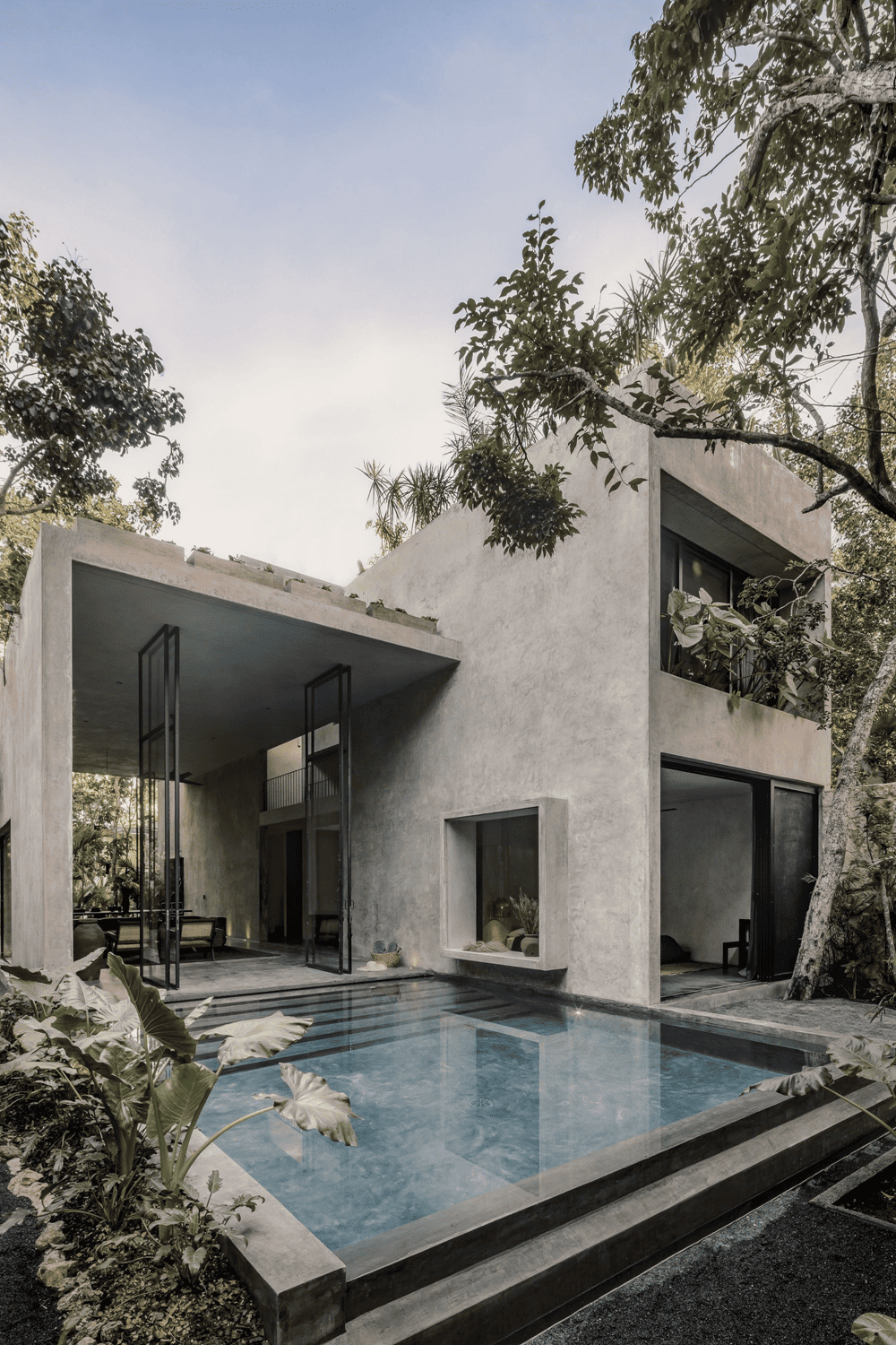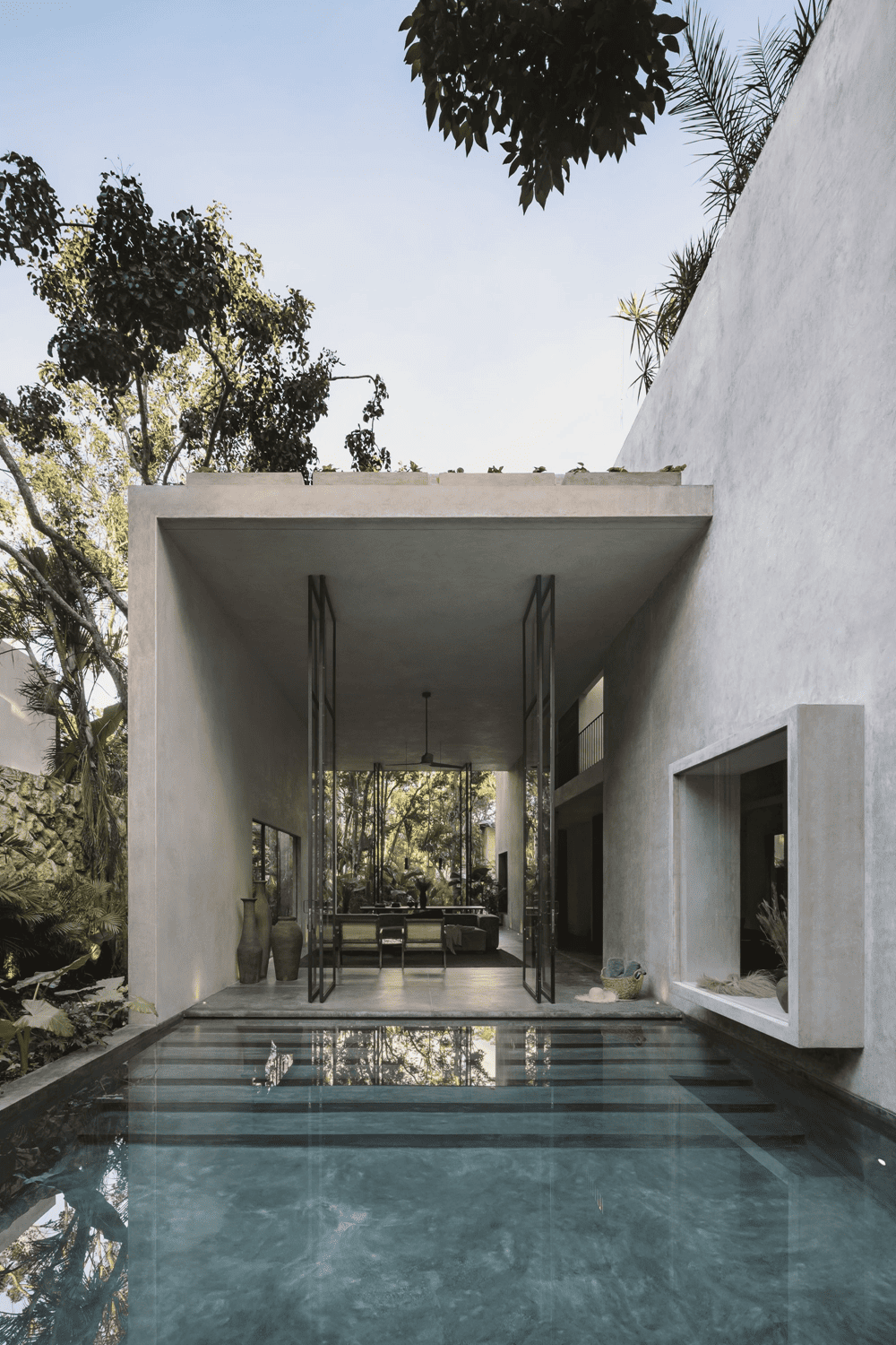 Aviv house距离图卢姆海滩和晶莹剔透的沼泽地不远,坐落在丛林中,将室内和室外融合为一个宽敞、宁静的空间。