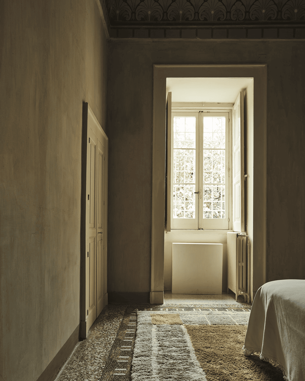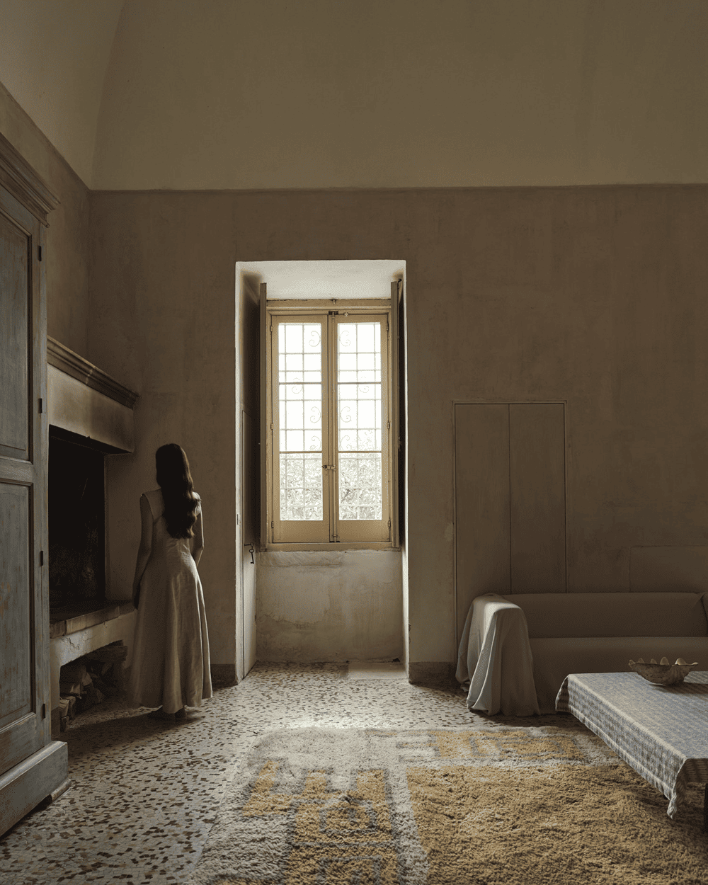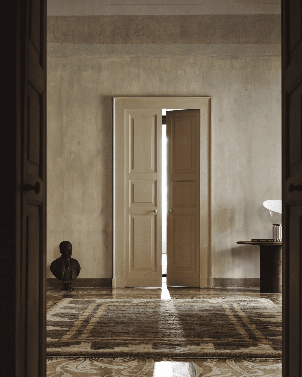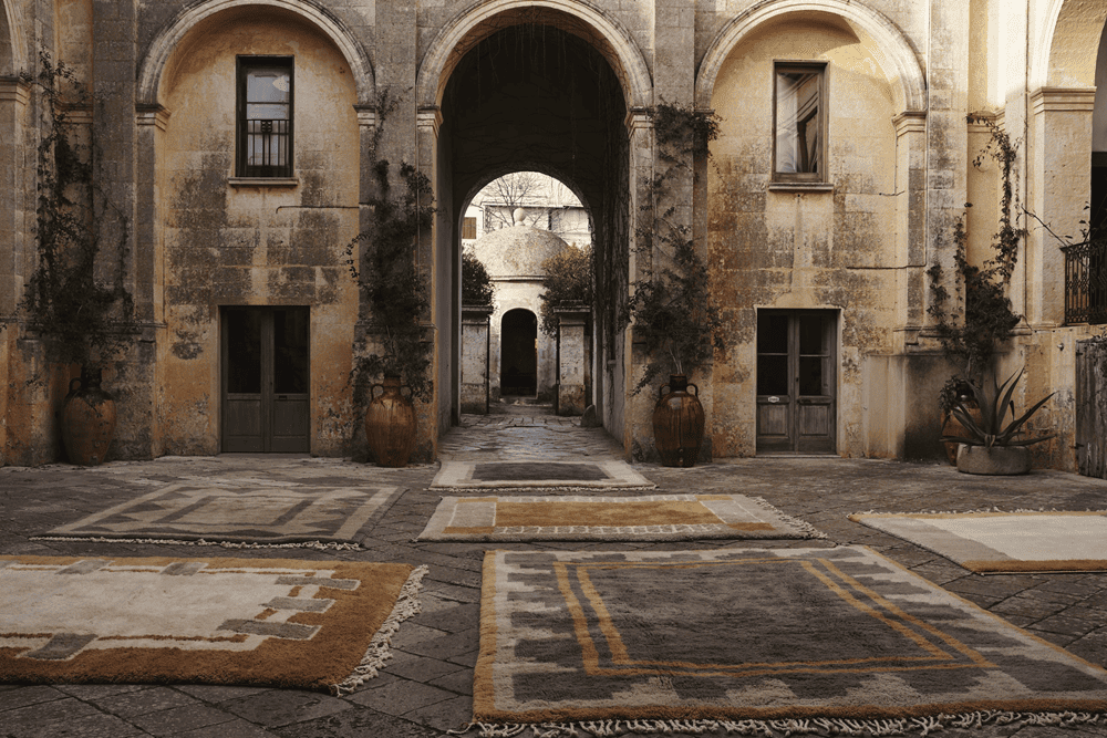 Colin King collaborated with Beni Rugs to create Spoken Lines in Puglia's enchanting Palazzo Daniel, interpreting rationalist architecture and Milanese mosaics through the lens of Morocco's hand-woven tradition.