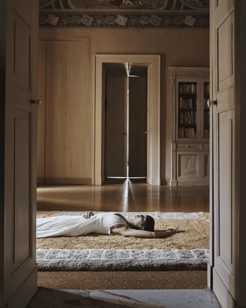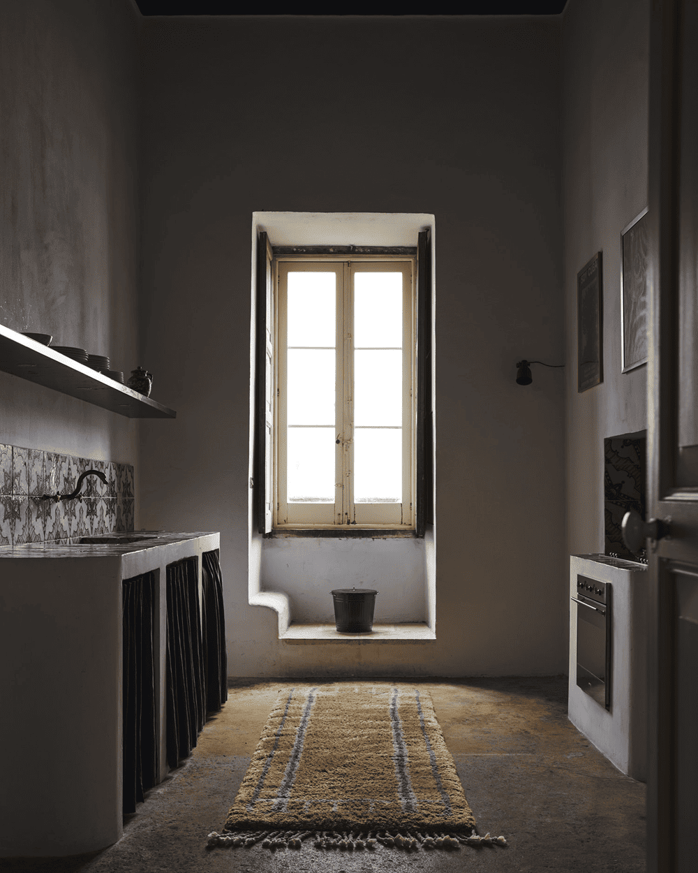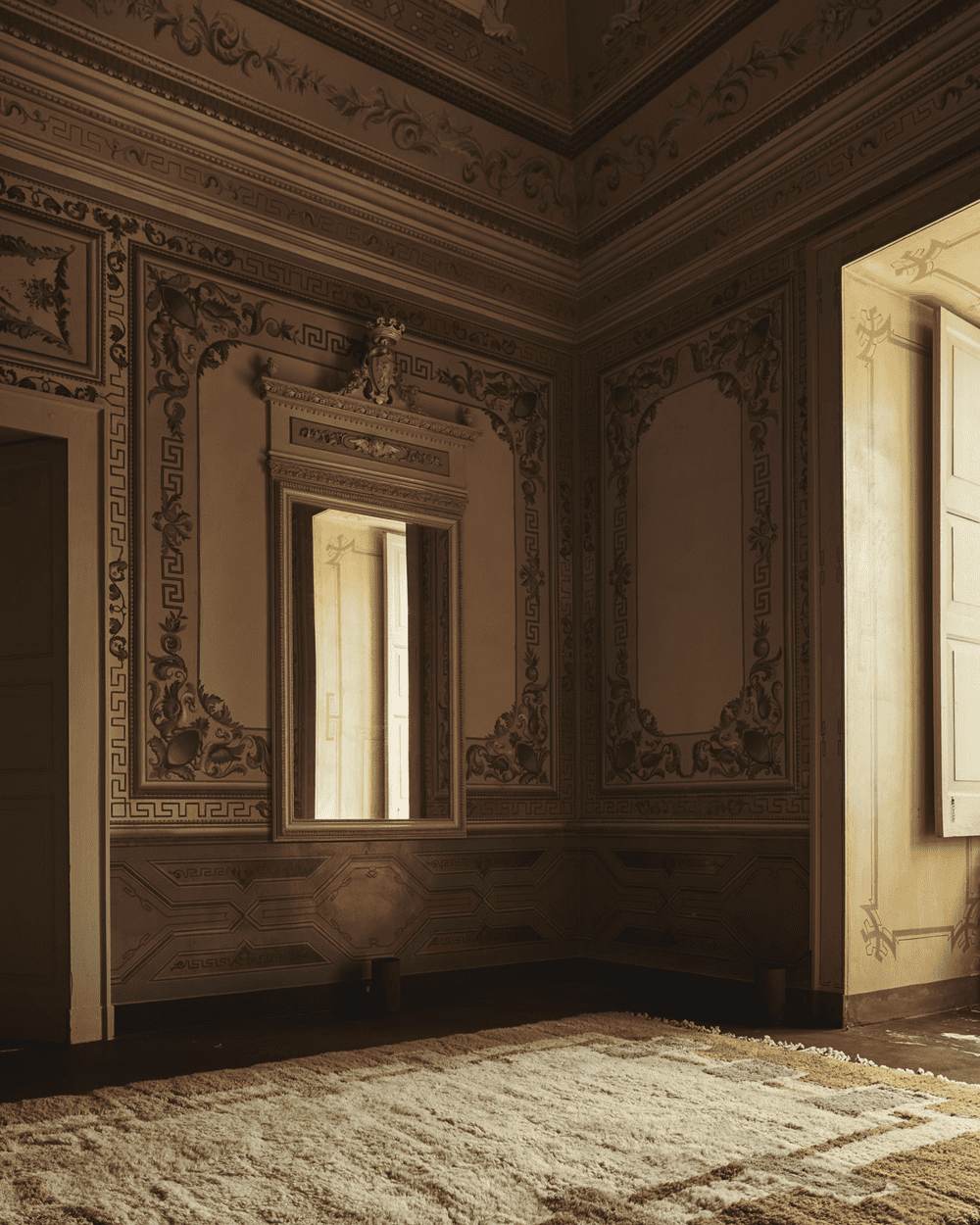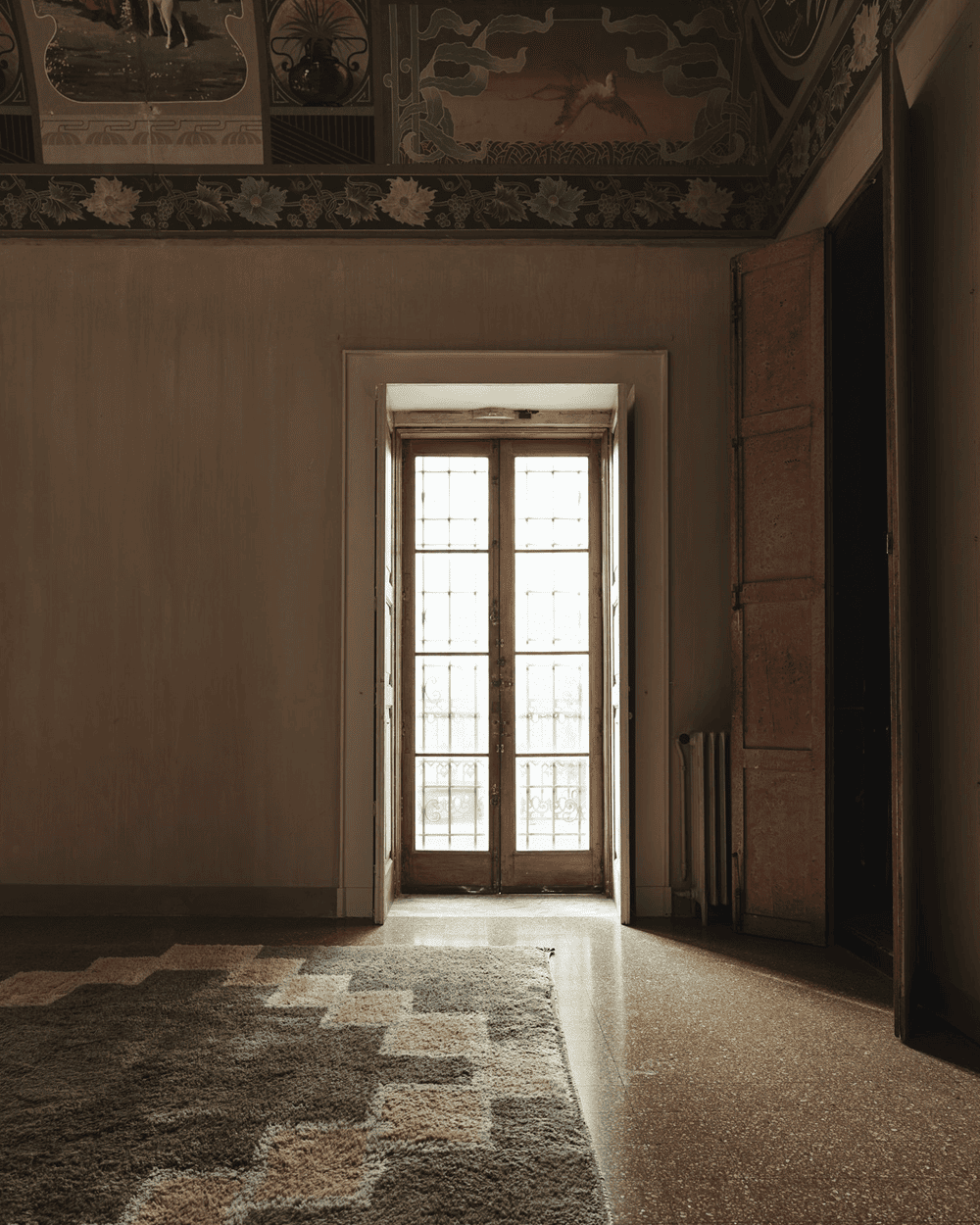 Colin King collaborated with Beni Rugs to create Spoken Lines in Puglia's enchanting Palazzo Daniel, interpreting rationalist architecture and Milanese mosaics through the lens of Morocco's hand-woven tradition.