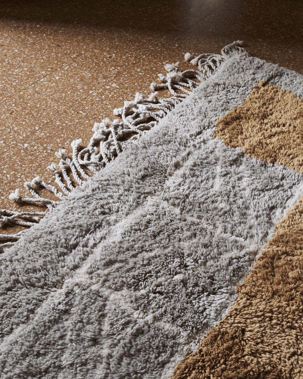 The design draws from many sources, including natural forms, abstract paintings, mosaic entryways, and views of the Atlas Mountains. In addition, Beni Rugs has collaborated with many thought leaders in the design field to push the boundaries of Moroccan weaving traditions.