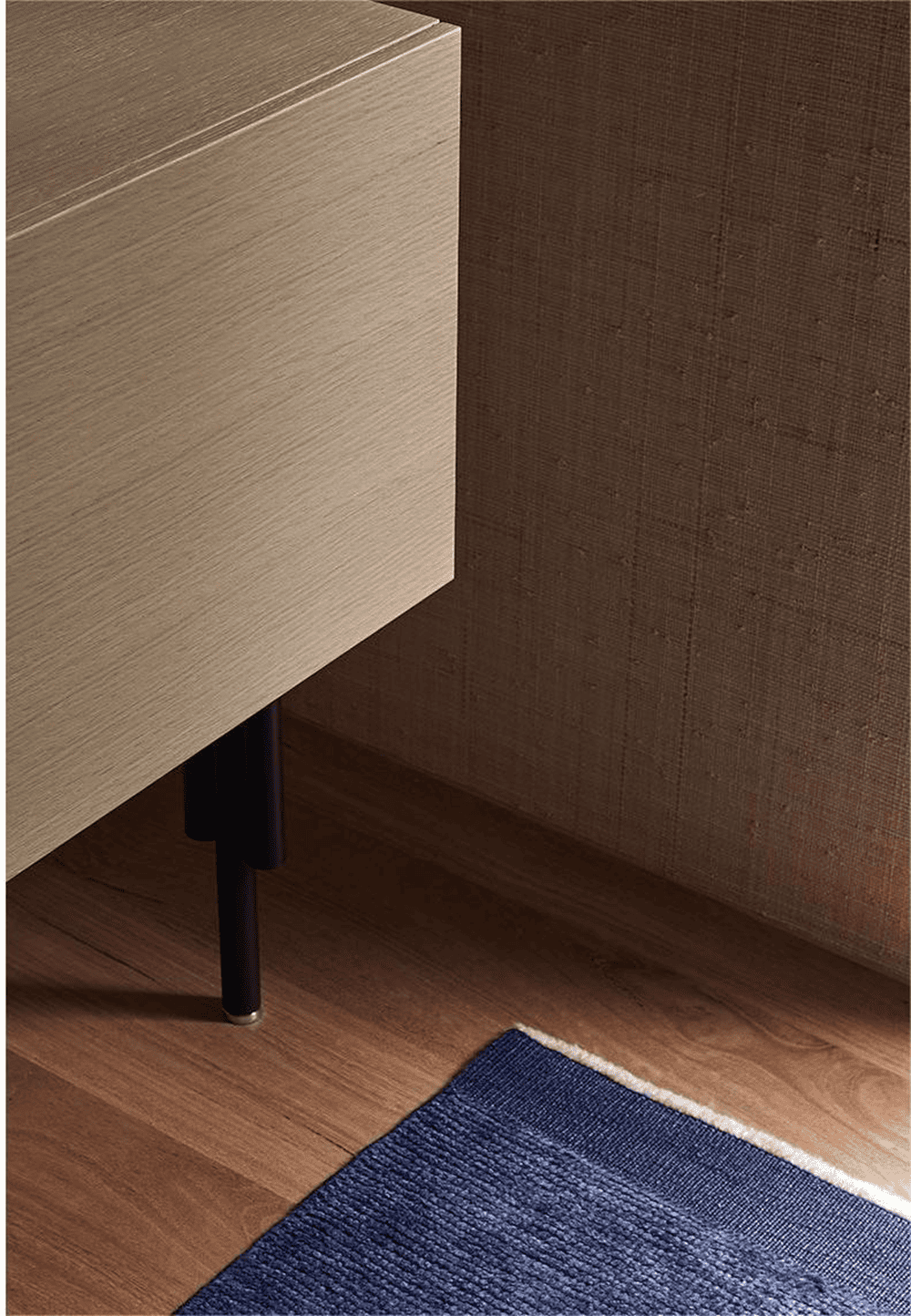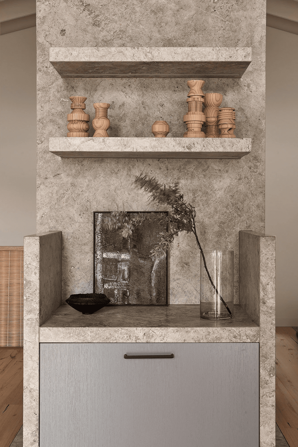 In keeping with the philosophy of Italian rationalism, the owners made a conscious decision to minimise ornamentation and hang only a small amount of artwork in order to fully appreciate the tactile detail of the surfaces.