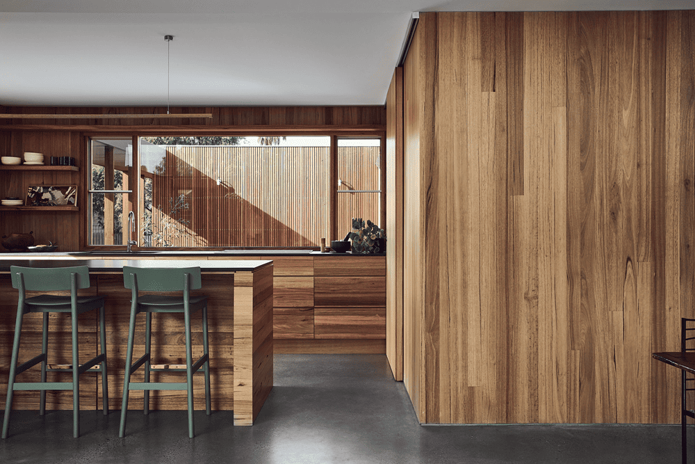 The timber provides a familiar sense of ambience of an old beach house and provides a distinct change of character from new to old. By engaging with the surrounding landscape and optimising orientation and angles, the home becomes more comfortable.