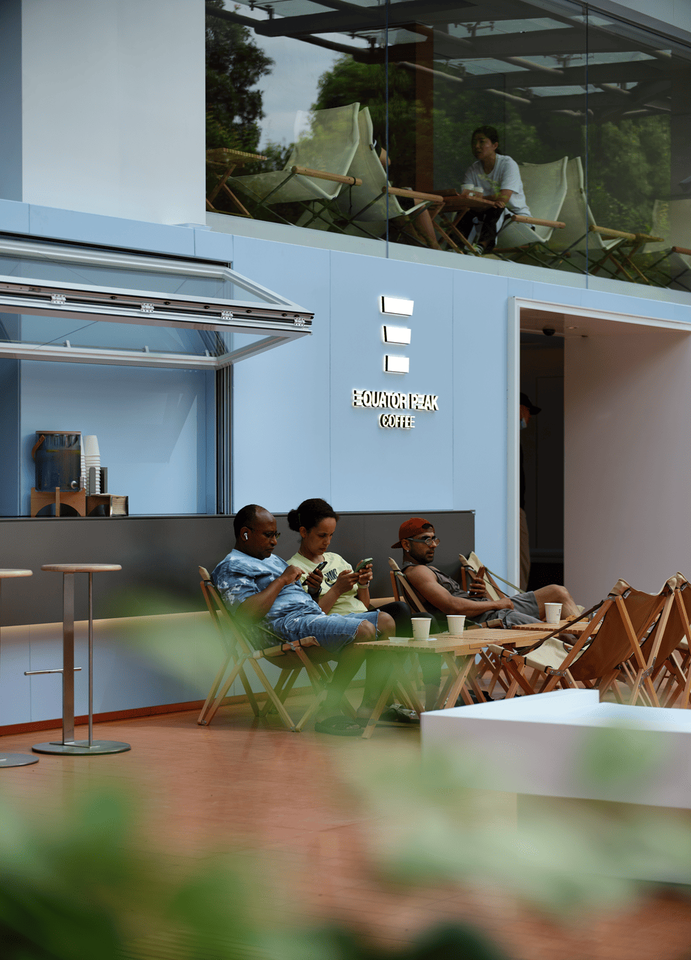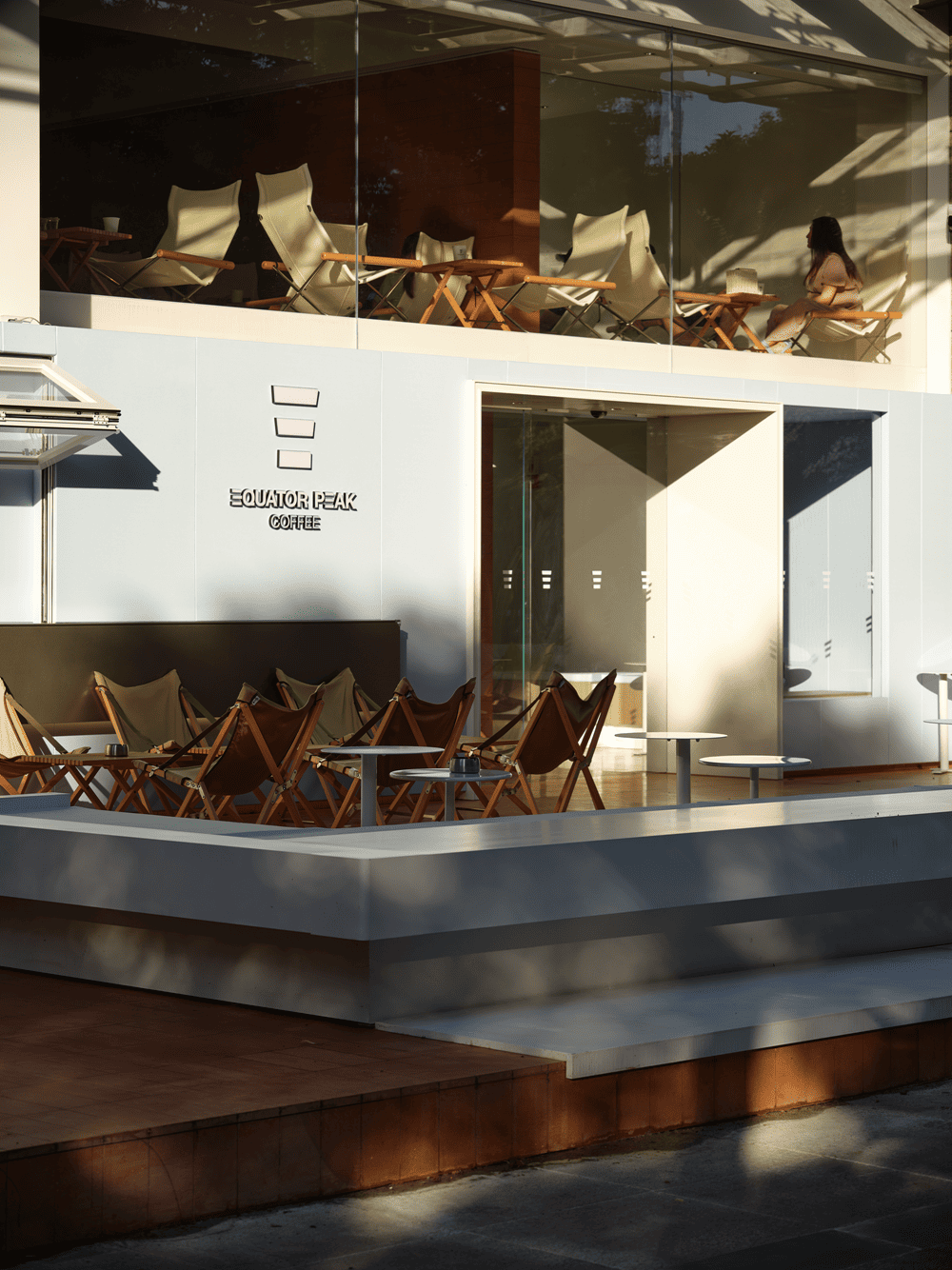 What EQUATOR PEAK COFFEE wants to create is a new type of social cafe, perhaps to reflect the growing need for social interaction or perhaps to project this need into the design of the space.