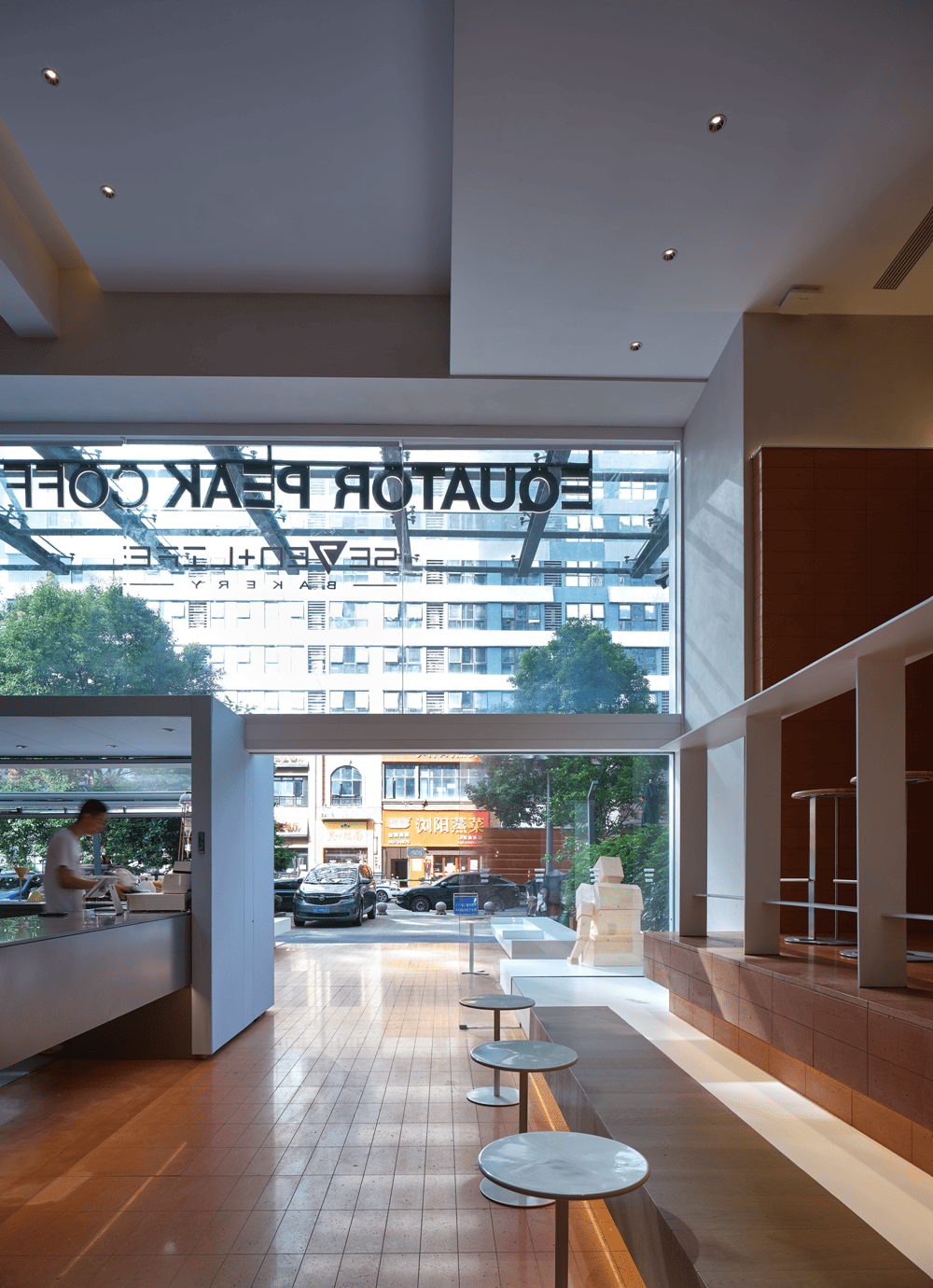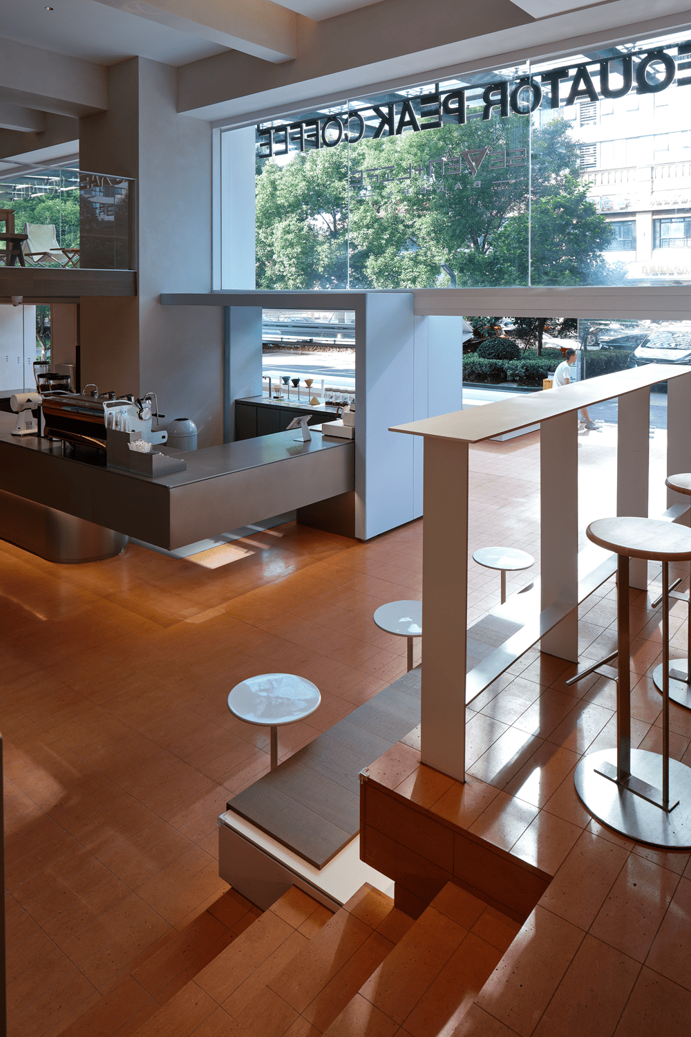 而EQUATOR PEAK COFFEE 想要打造的,却是一种新型的社交型咖啡厅,这或许是为了体现当下人们日益增长的社交需求,又或者说,是将这种需求投射到了空间的设计上。