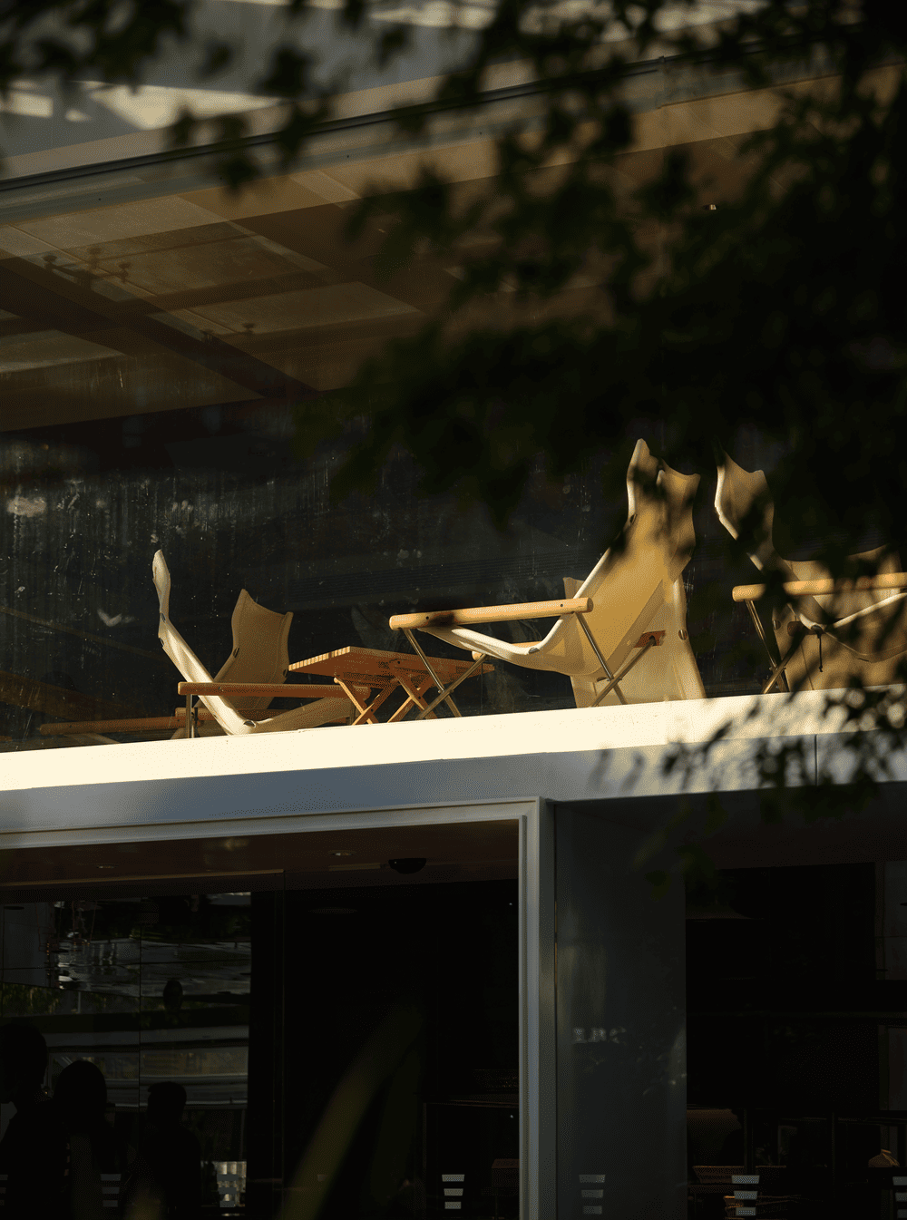 他们尝试将“在阳光下,一本书和一杯咖啡”具象化到空间的设计使用中,尝试打造一种“露营”的氛围感受。依照其观点,喝咖啡,应该和露营一样,认识或不认识的人都能在此交流和发生对话,是一种新型的交往模式。