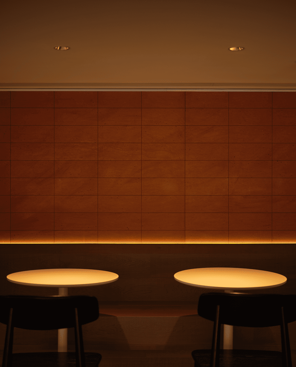 The upward folding windows create an outwardly communicative street vending experience, which, combined with the open outdoor dining terrace, subtly creates a resort-like atmosphere.