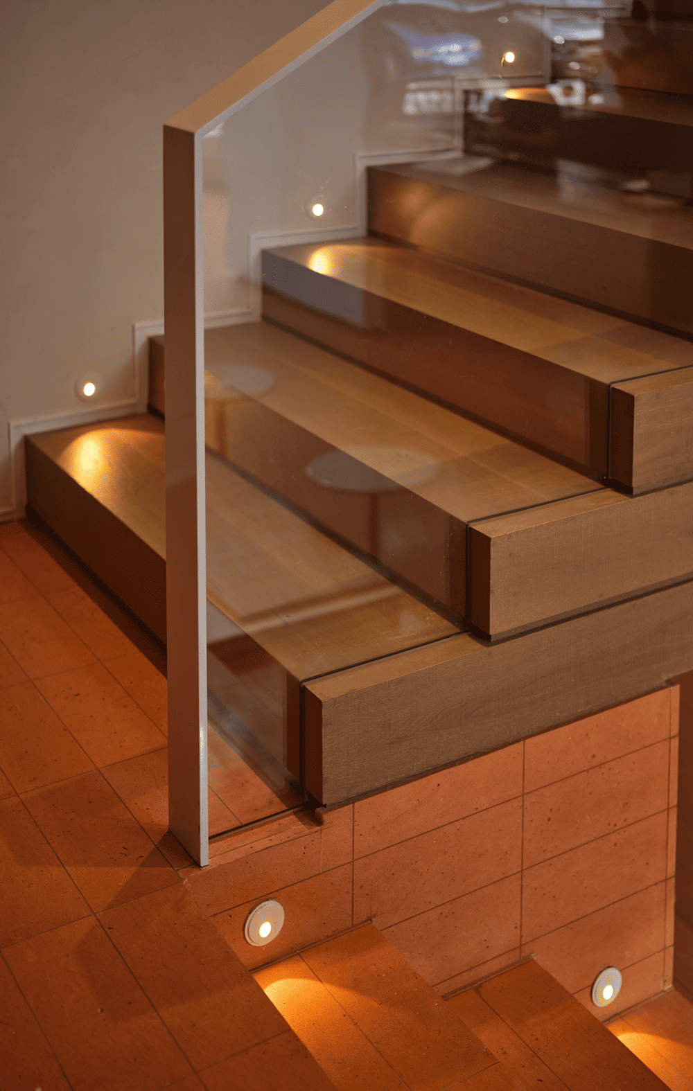 The façade, on the other hand, is more of a white interface. The warm red and wood colours give a sense of envelopment. At the same time, the large areas of white provide a sense of spaciousness. These two colours illustrate the different spatial experiences intended for the interior and exterior.