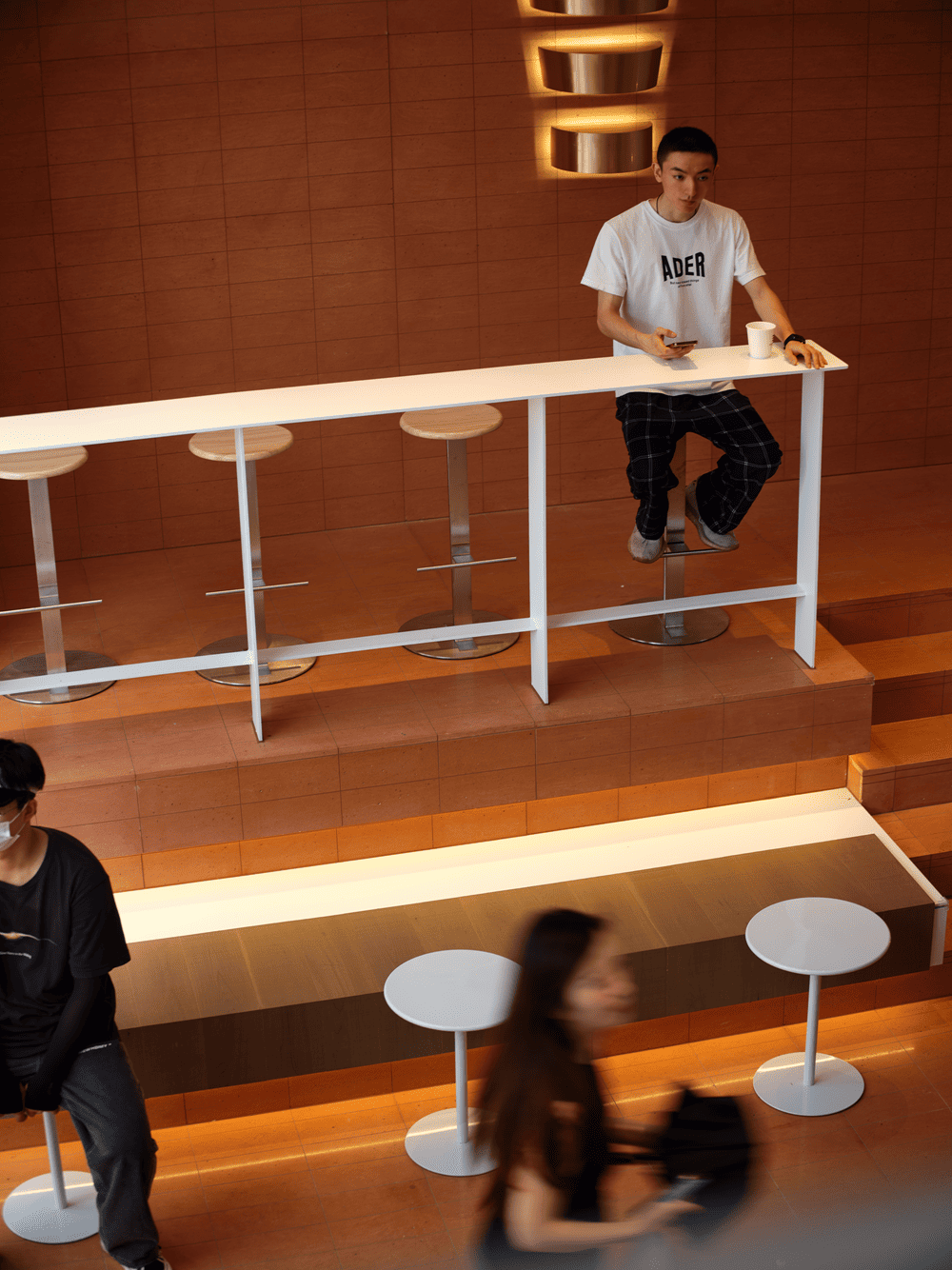 In the past, our impression of coffee shops seemed stuck in the following two stages: the earliest buy-it-and-go pure coffee sales, or the coffee-based lifestyle, as exemplified by Starbucks. These two models, whether in operation methods or interior design, both emphasise the private sphere to a greater or lesser extent. They are highly inward-looking and private to consumers.