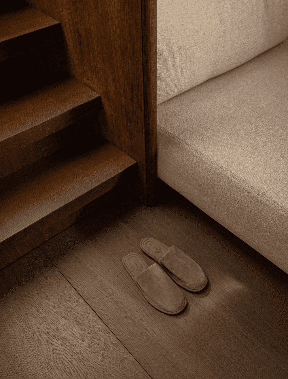 Embracing the natural curves of the ship, unnecessary elements of its framework are removed to achieve a simpler, more coherent space with fluent transitions and soft thresholds that make for a calming home setting within the soft, minimal universe of natural materials and tactile surfaces. Now, beautifying details are found in the forms and high-quality craftsmanship of the subtle built-in, wooden elements.