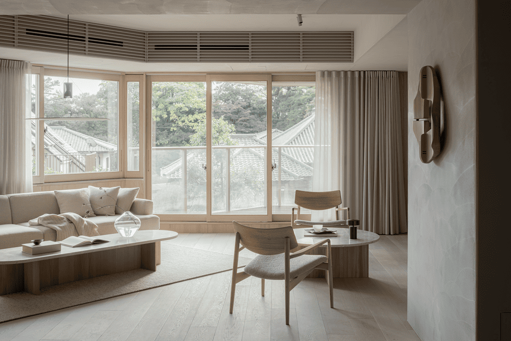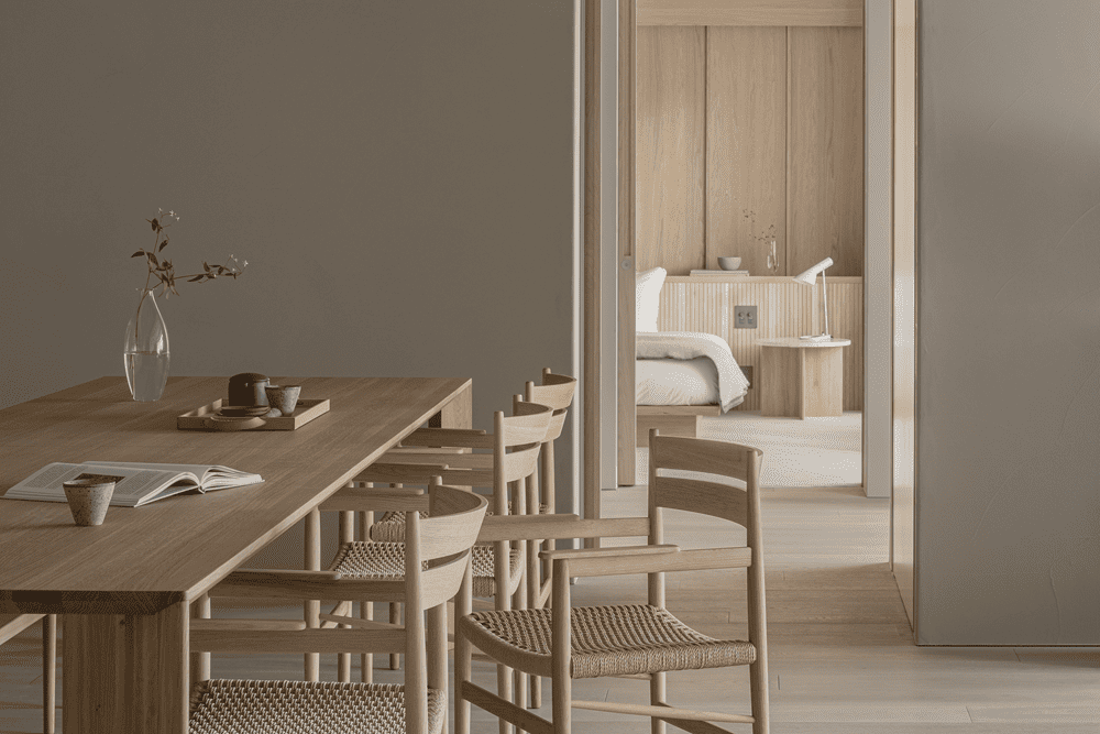 Keiji Ashizawa Design 设计团队对室内进行了翻新,并设计了一些量身定制的家具,作为该项目的组成部分。这些家具构成了 Karimoku Case 的第 8 个系列。该系列以排除噪音为室内主题,为人们提供了一个可以长时间逗留的体贴氛围。