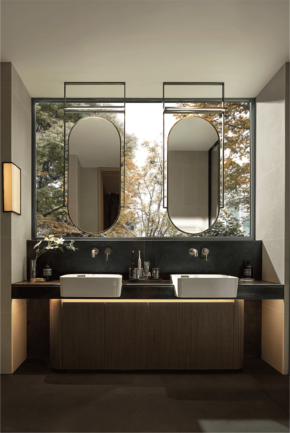 The TV is no longer the core of the living room but is replaced by the courtyard, nature and sky. Sit casually on the sofa or antique single chair; the oversized floor-to-ceiling windows constantly invite the entry of nature and sunlight. Whether it is a family gathering or social reception, the living room can become the most active and diverse common space.