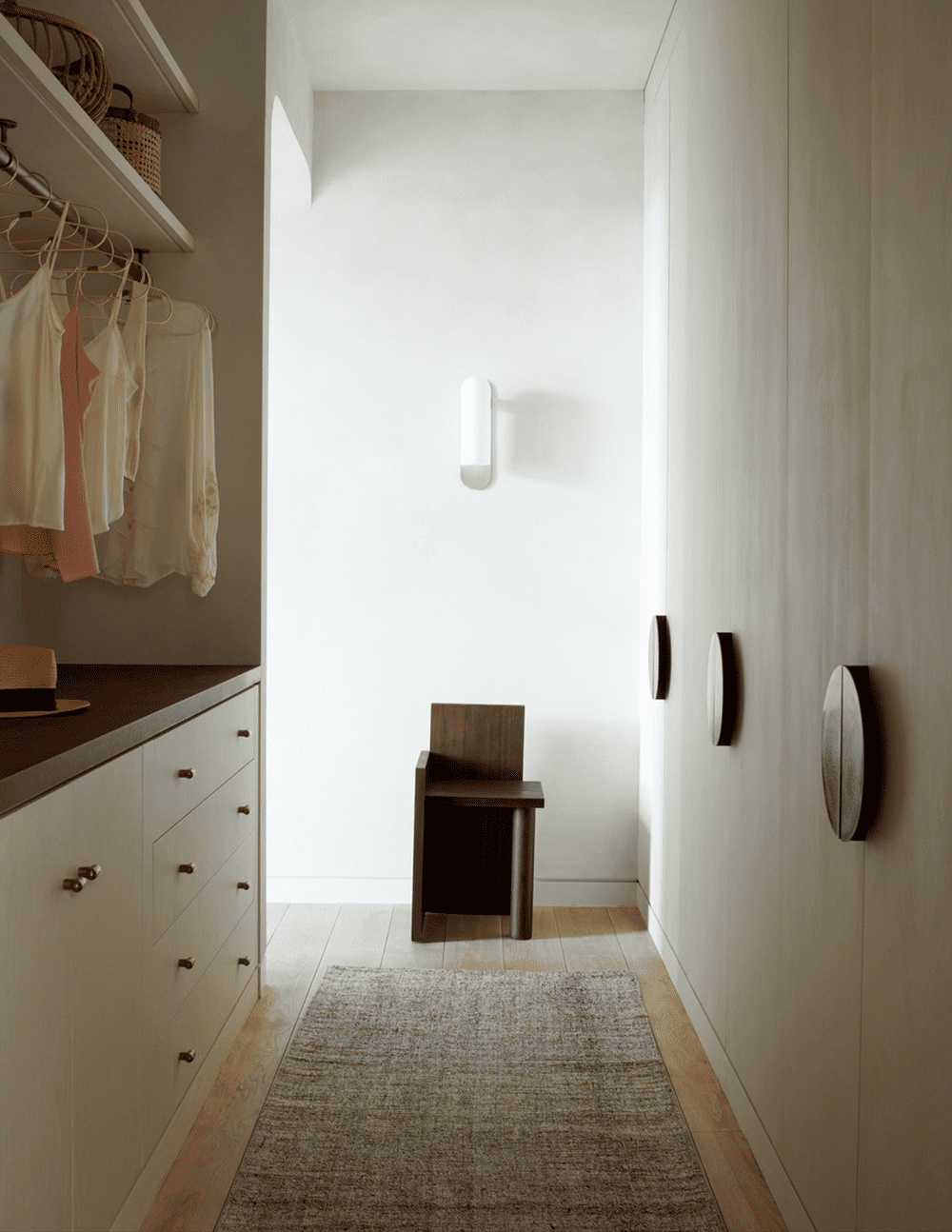 该公寓的内部设计巧妙地融合了微妙和丰富的色调,并形成了一个复杂的、耐人寻味的空间氛围。在自然光的照射下,空间硬架构的纹理材质和大胆设计表现,像作为艺术品、复古家具和极简主义家具的背景,促成了整体空间的宁静氛围。