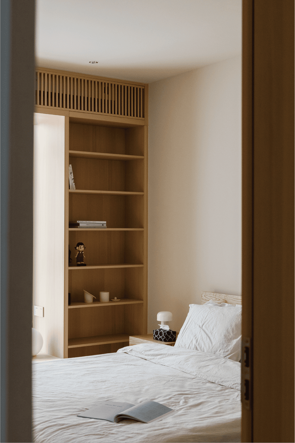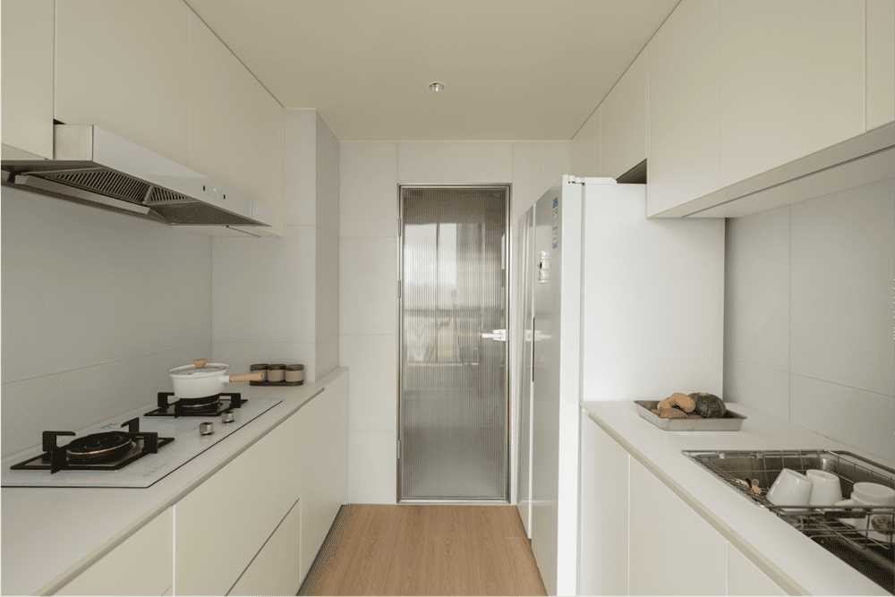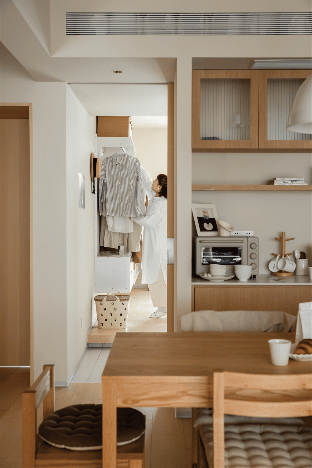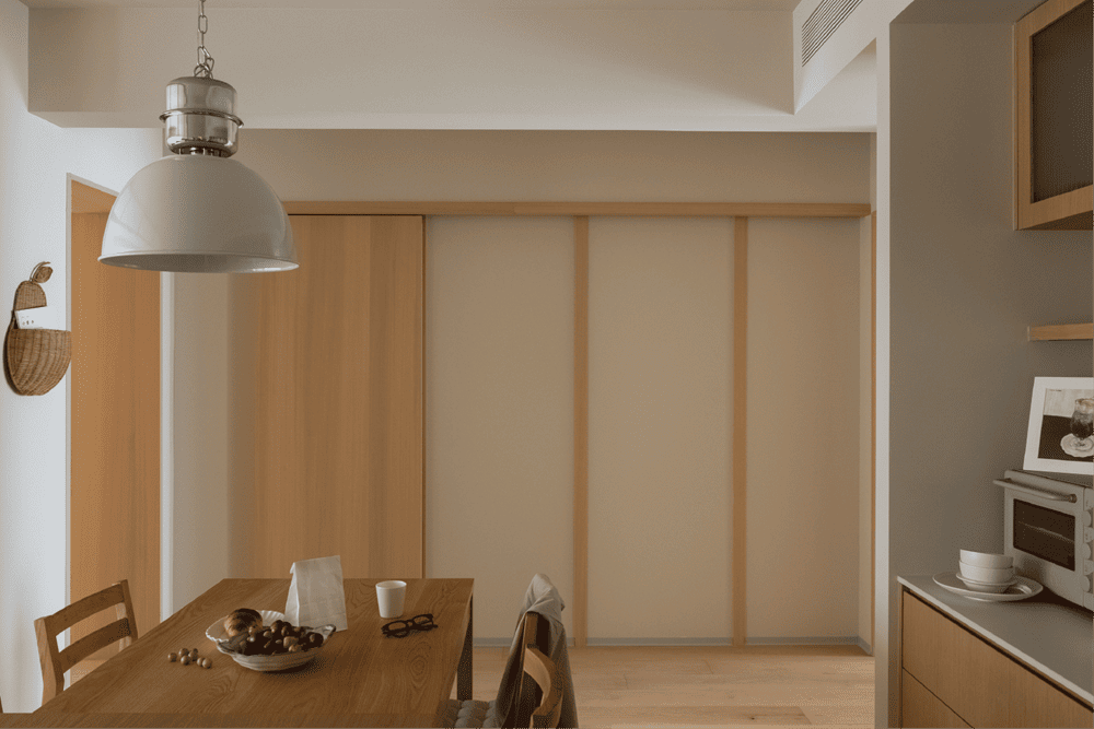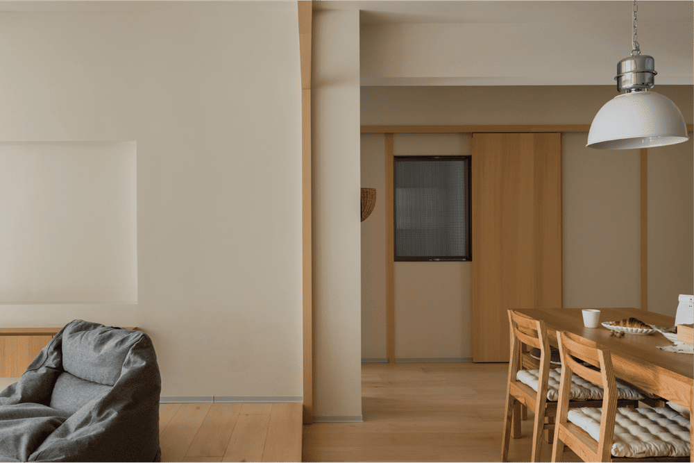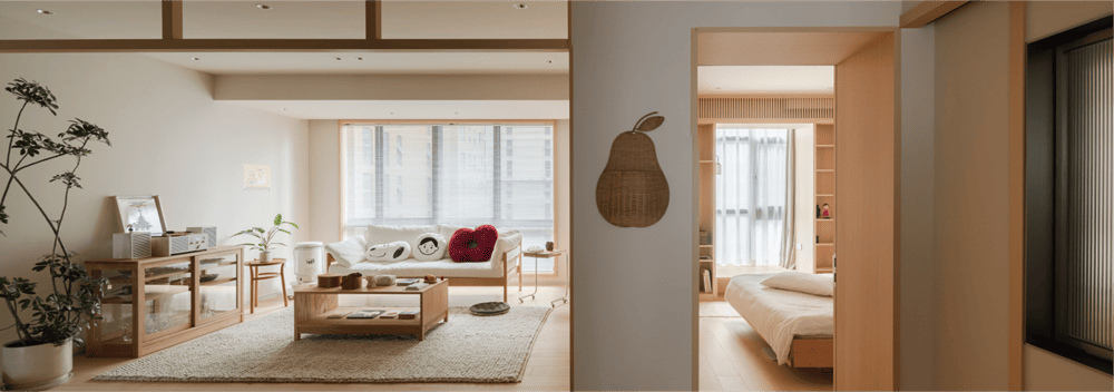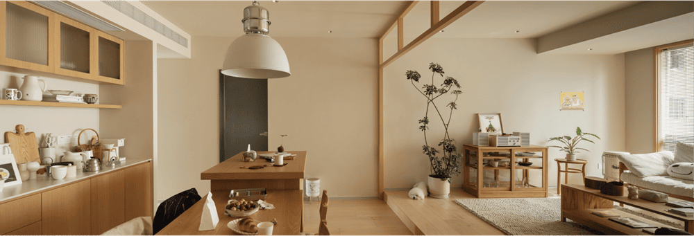When you step into this space, you are not only in the quiet sunshine, but also in silent communication with the owner, which reveals the owner's tolerant and relaxed attitude towards life.This is the warm winter home we designed for the owner Sunday. The beige walls echo the log-colored Canadian maple floors, creating a soft and warm atmosphere. The moment you push the door and enter, you can get rid of all your fatigue and worries.The open water bar and living room neatly display all kinds of lovely items that the owner likes, exquisite and small, like the owner herself full of vigor and vitality, so that make everyone in this room feel warm.
